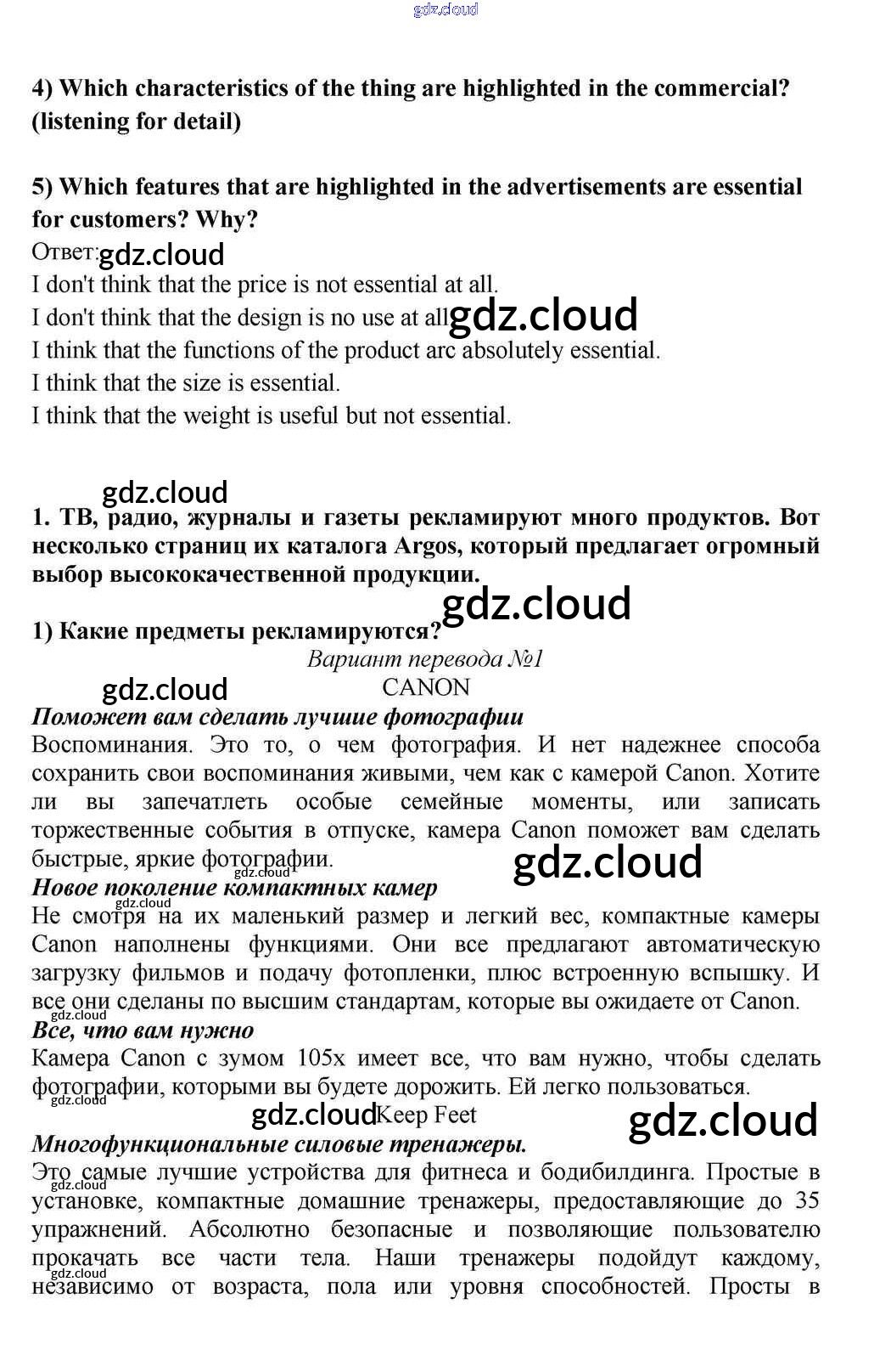 Ответ на задание 1 Учебник Английский язык за 10, 11 (десятый, одиннадцатый) класс Кузовлев, Лапа, Перегудова 2012