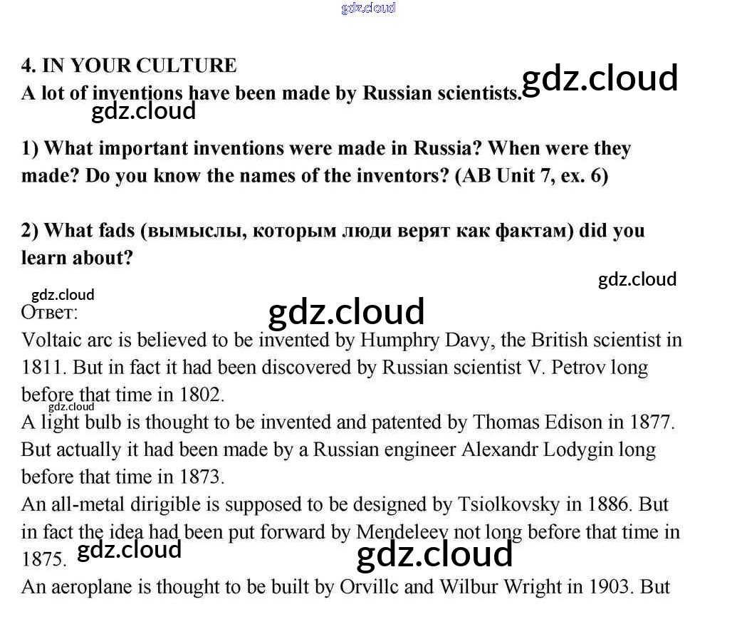 Lesson 3 Ответы к Unit 7. Inventions That Shook the World по Английскому языку 10, 11 класс Учебник Кузовлев Просвещение