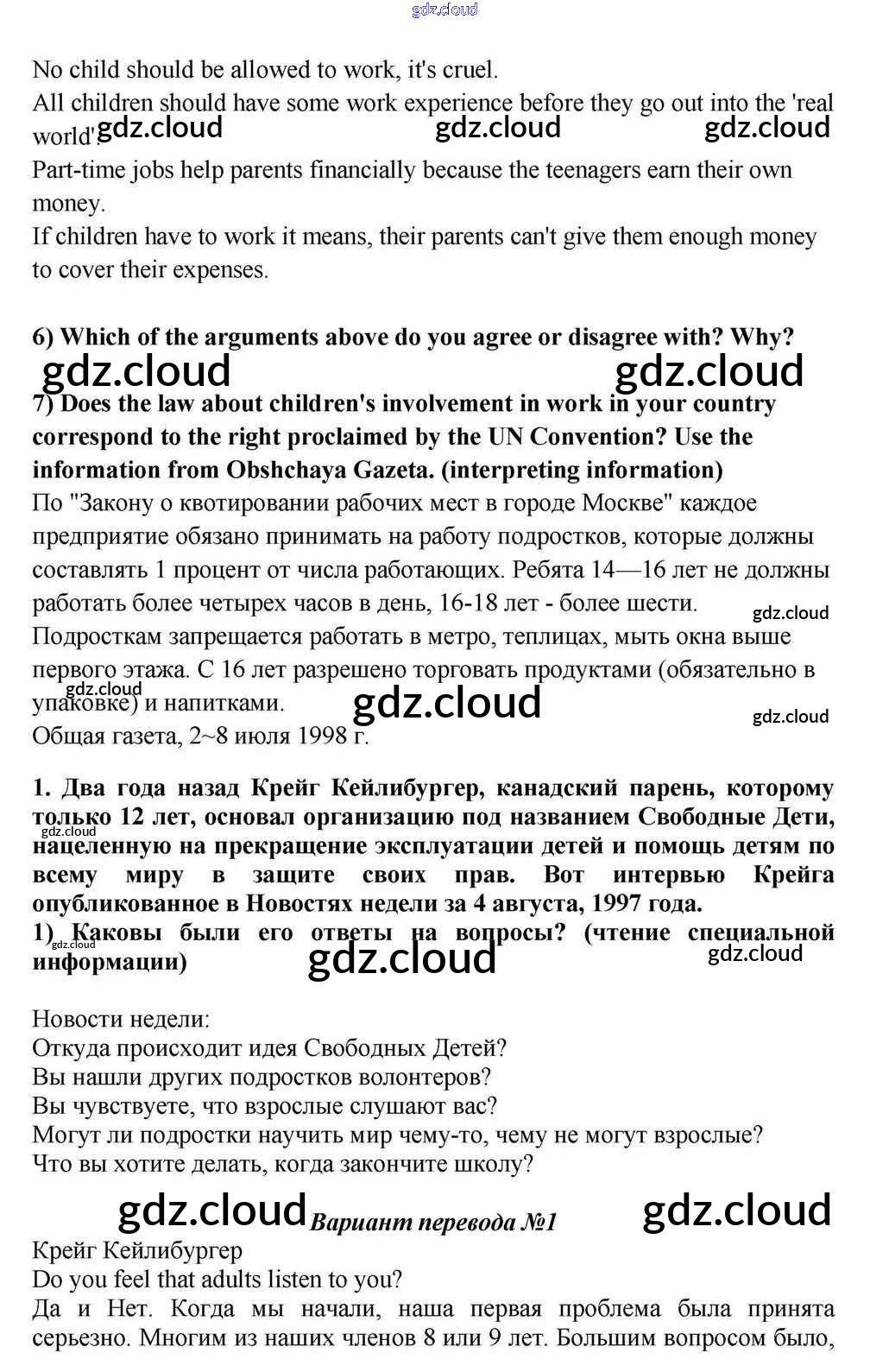 Ответ на задание 1 Учебник Английский язык за 10, 11 (десятый, одиннадцатый) класс Кузовлев, Лапа, Перегудова 2012