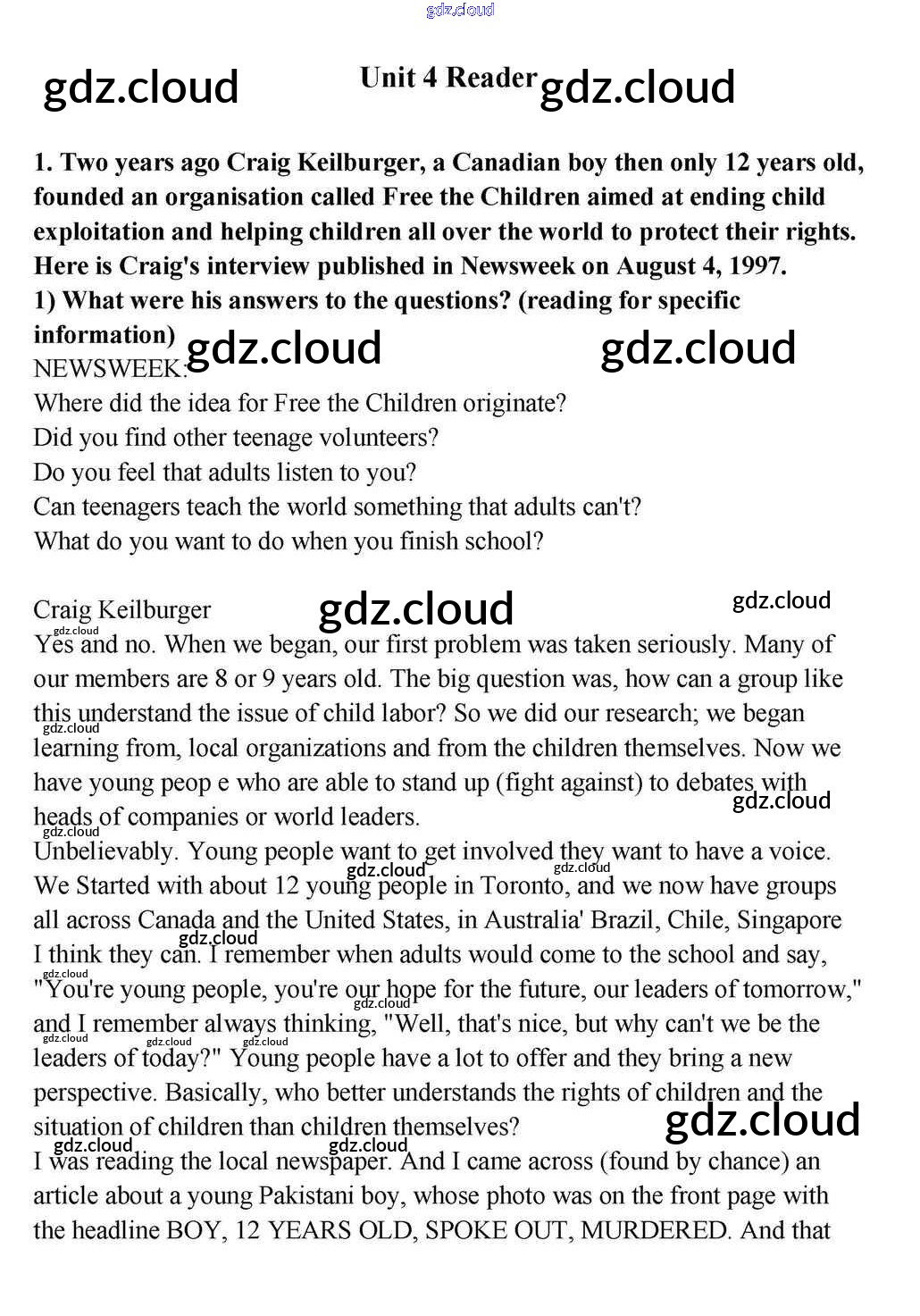 Unit 4 Ответы к Reader по Английскому языку 10, 11 класс Учебник Кузовлев Просвещение