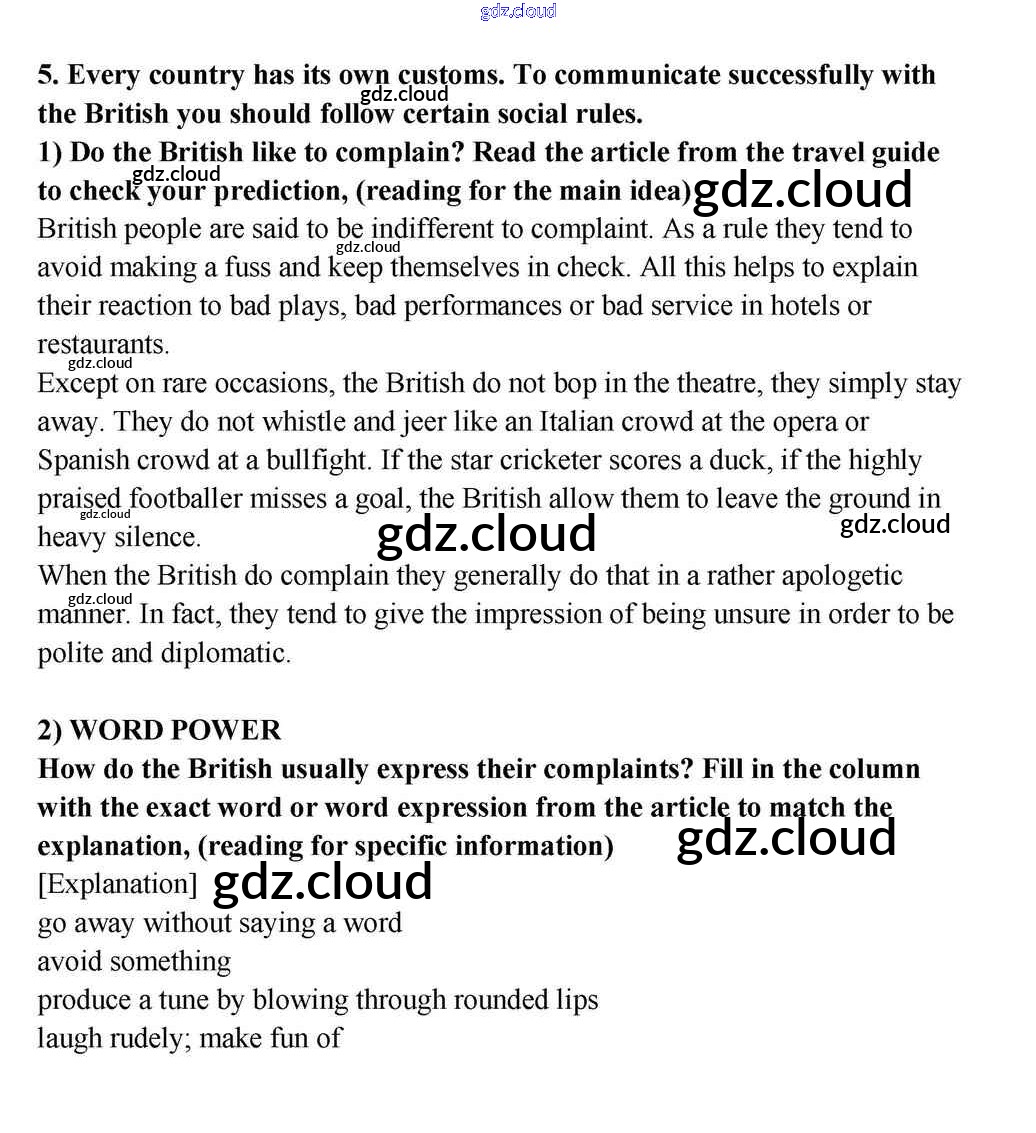 Ответ на задание 5 Учебник Английский язык за 10, 11 (десятый, одиннадцатый) класс Кузовлев, Лапа, Перегудова 2012