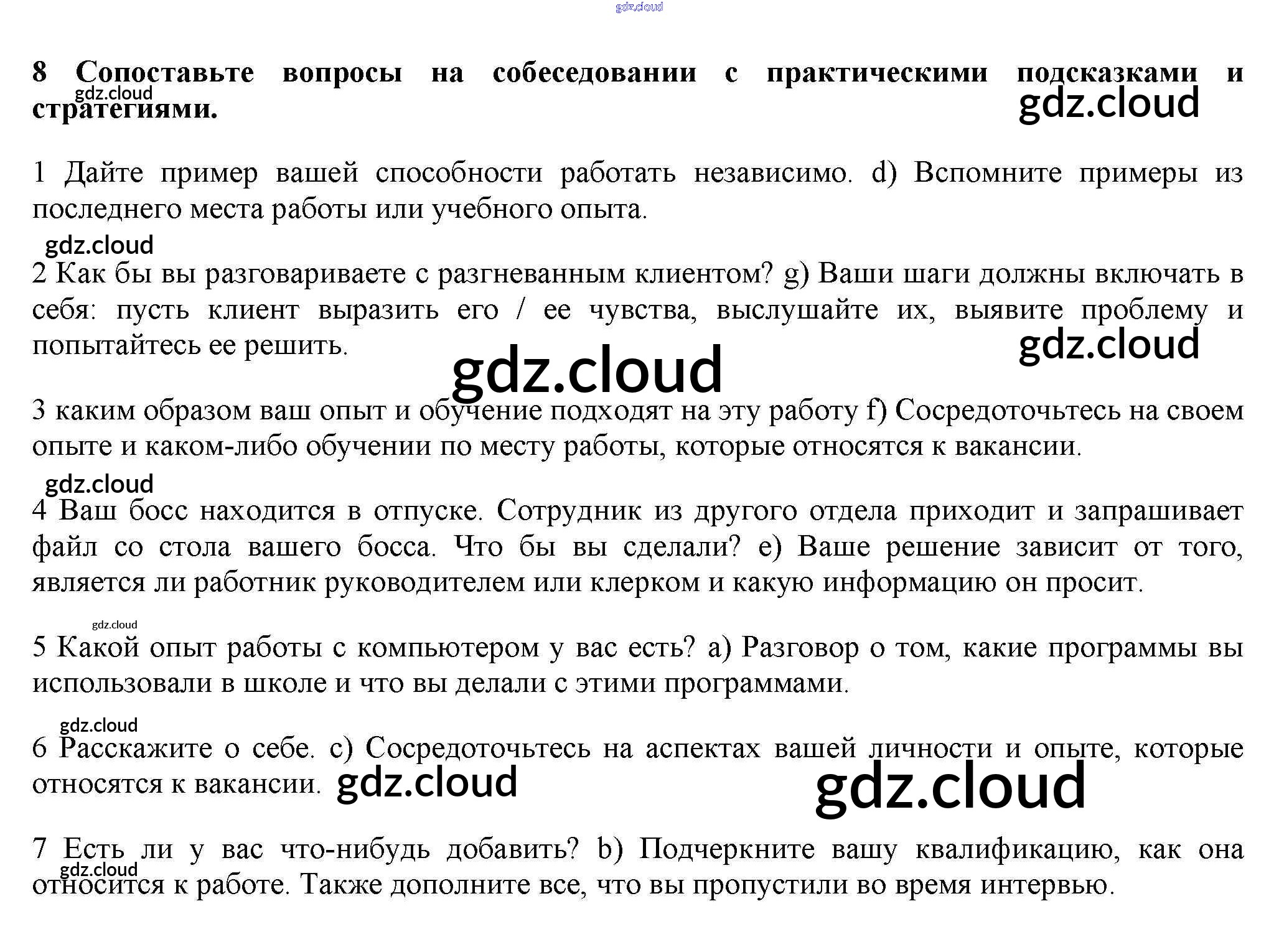 Ответ на задание 8 Рабочая тетрадь Английский язык за 11 (одиннадцатый) класс Гроза, Дворецкая New Millennium 2013 ФГОС онлайн и без номера телефона.