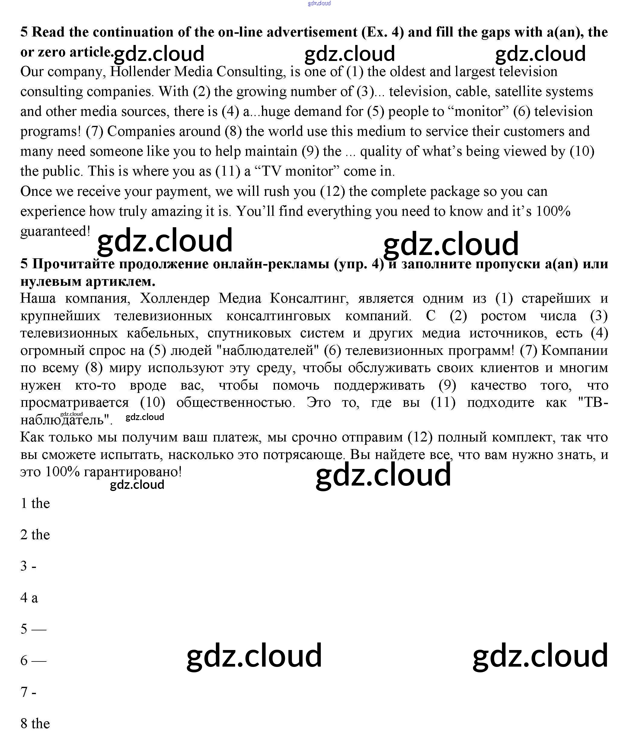 Ответ на задание 5 Рабочая тетрадь Английский язык за 11 (одиннадцатый) класс Гроза, Дворецкая New Millennium 2013 ФГОС онлайн и без номера телефона.