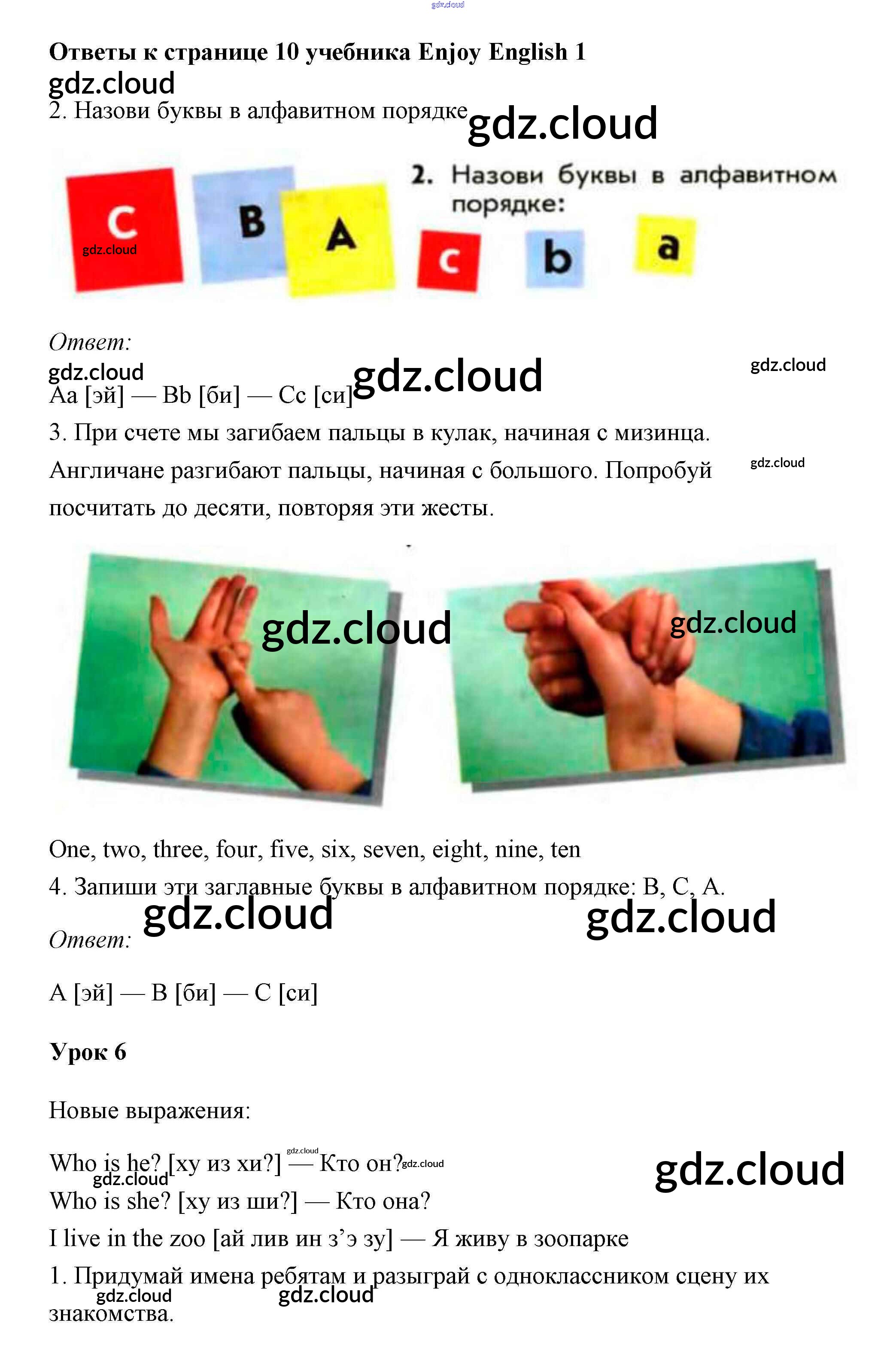 Ответ на задание 10 Учебник Английский язык за 1 (первый) класс Биболетова, Добрынина, Ленская Enjoy English 2010 онлайн и без номера телефона.