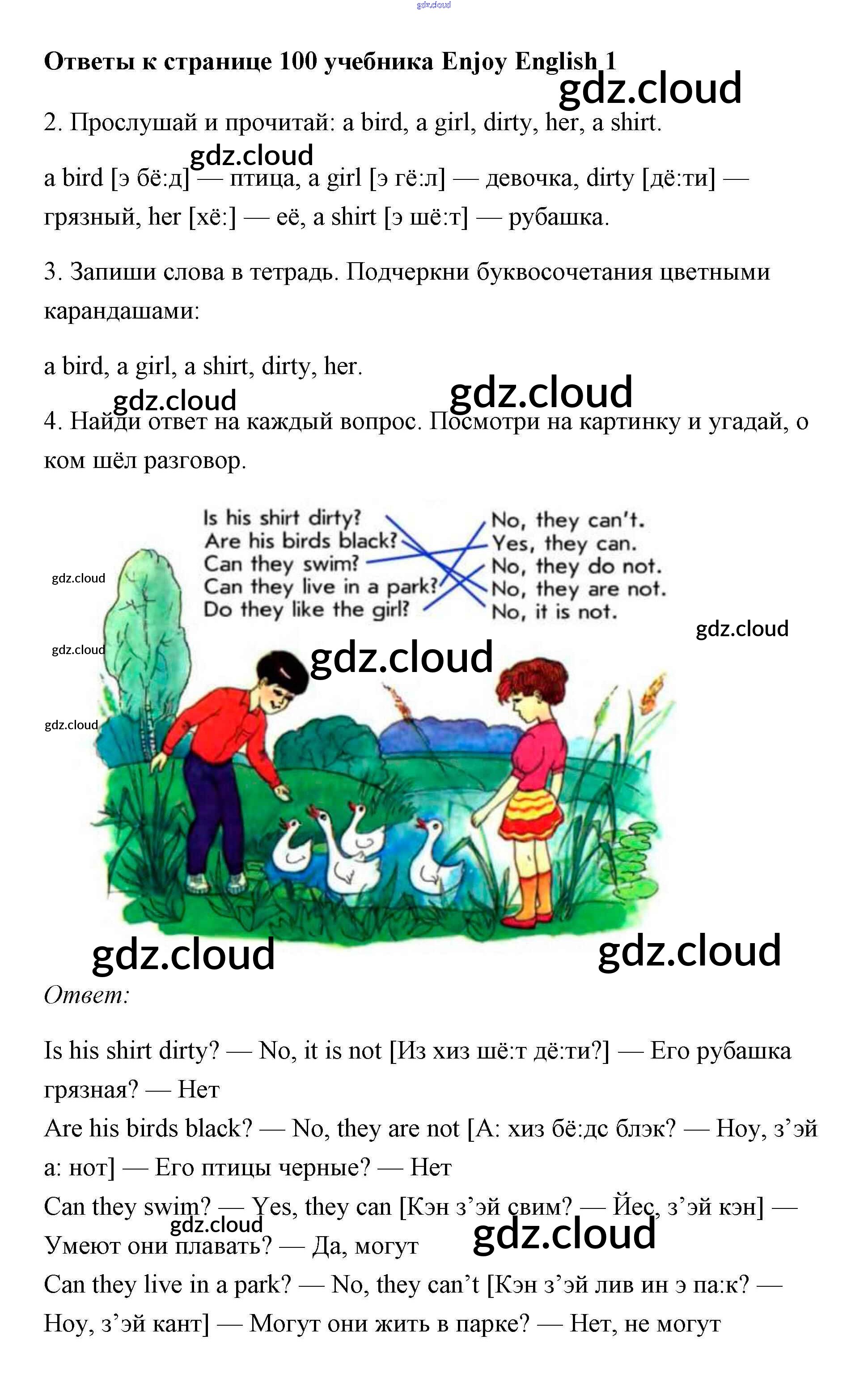 Ответ на задание 100 Учебник Английский язык за 1 (первый) класс Биболетова, Добрынина, Ленская Enjoy English 2010 онлайн и без номера телефона.