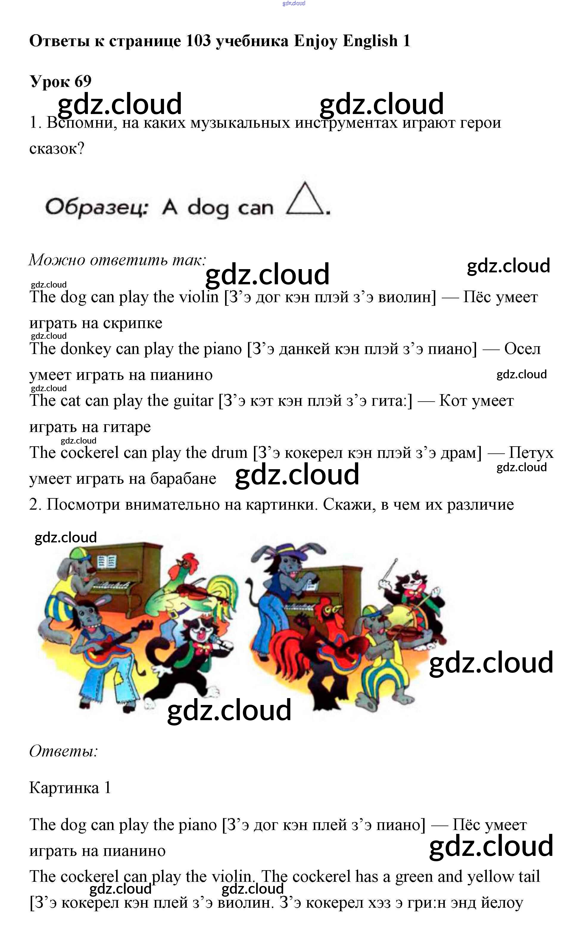 Ответ на задание 103 Учебник Английский язык за 1 (первый) класс Биболетова, Добрынина, Ленская Enjoy English 2010 онлайн и без номера телефона.