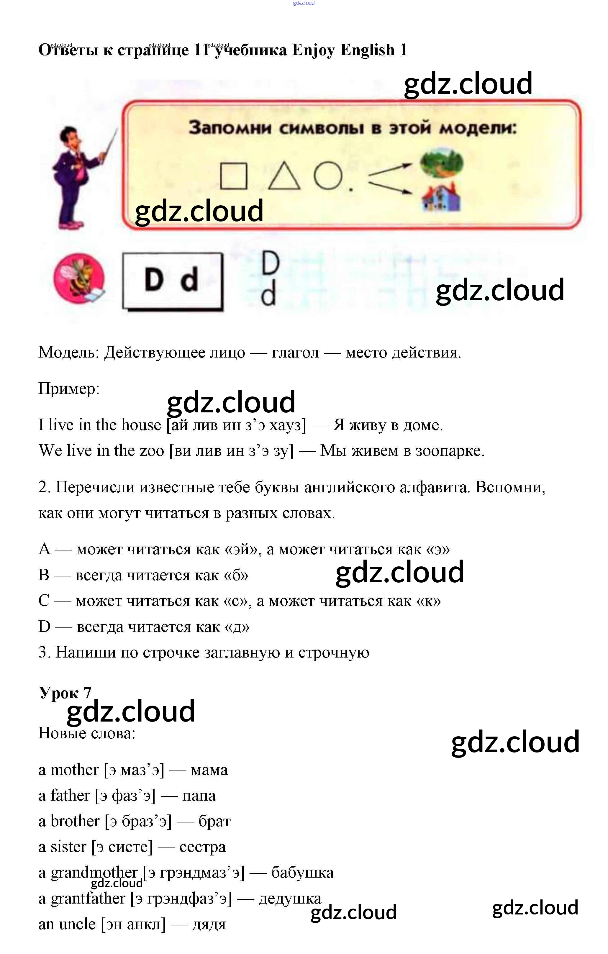 Ответ на задание 11 Учебник Английский язык за 1 (первый) класс Биболетова, Добрынина, Ленская Enjoy English 2010 онлайн и без номера телефона.