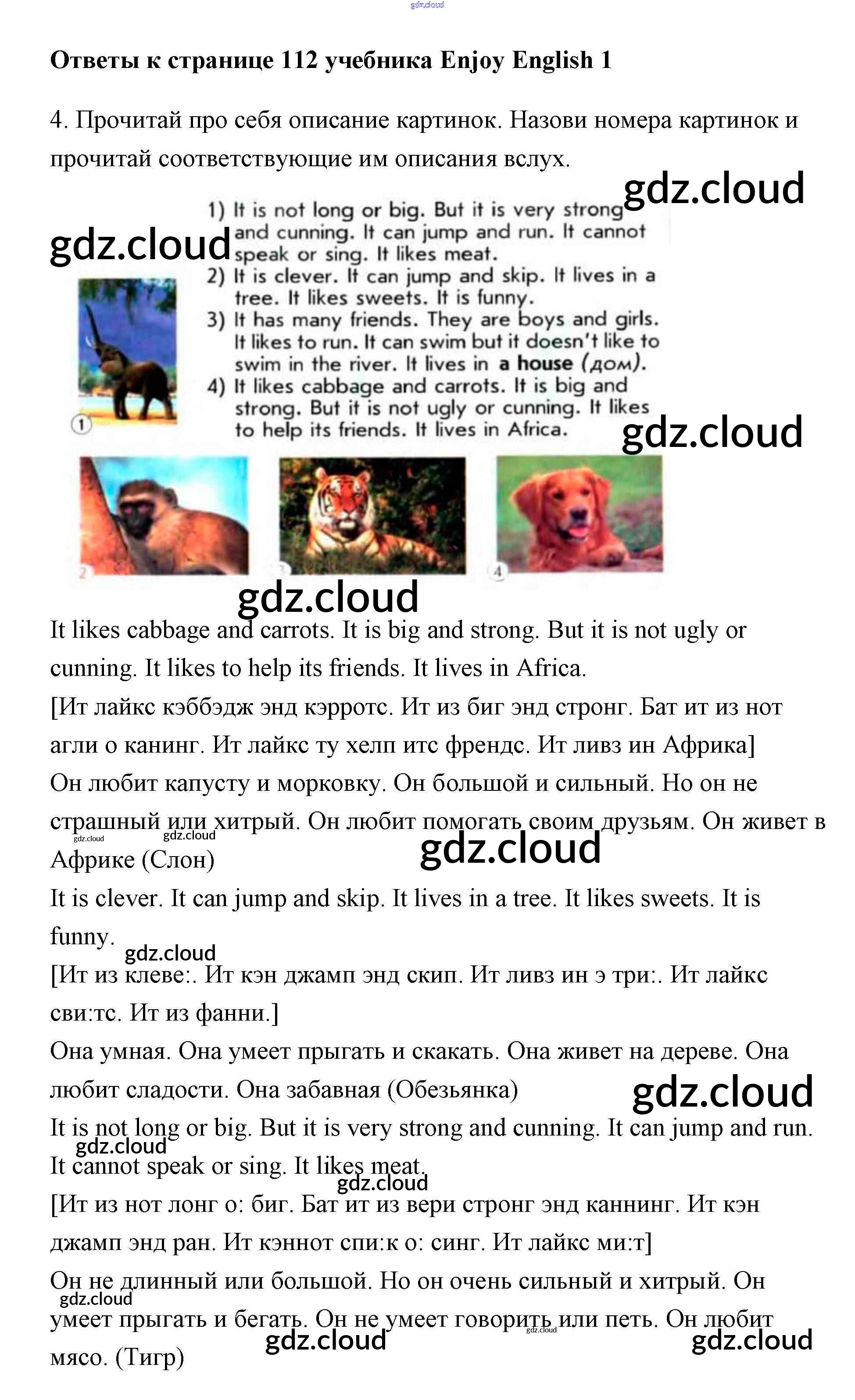 Ответ на задание 112 Учебник Английский язык за 1 (первый) класс Биболетова, Добрынина, Ленская Enjoy English 2010 онлайн и без номера телефона.