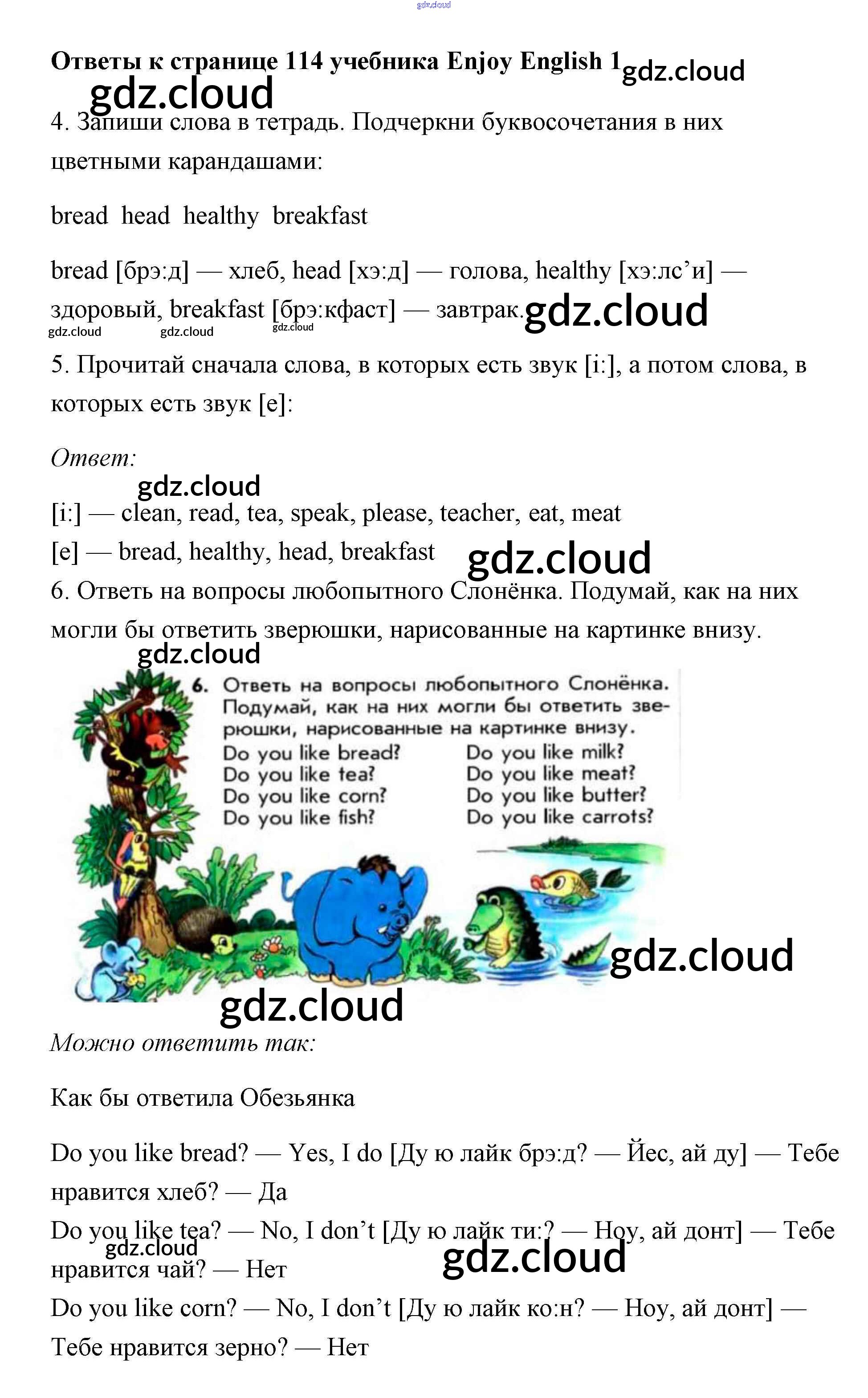 Ответ на задание 114 Учебник Английский язык за 1 (первый) класс Биболетова, Добрынина, Ленская Enjoy English 2010 онлайн и без номера телефона.