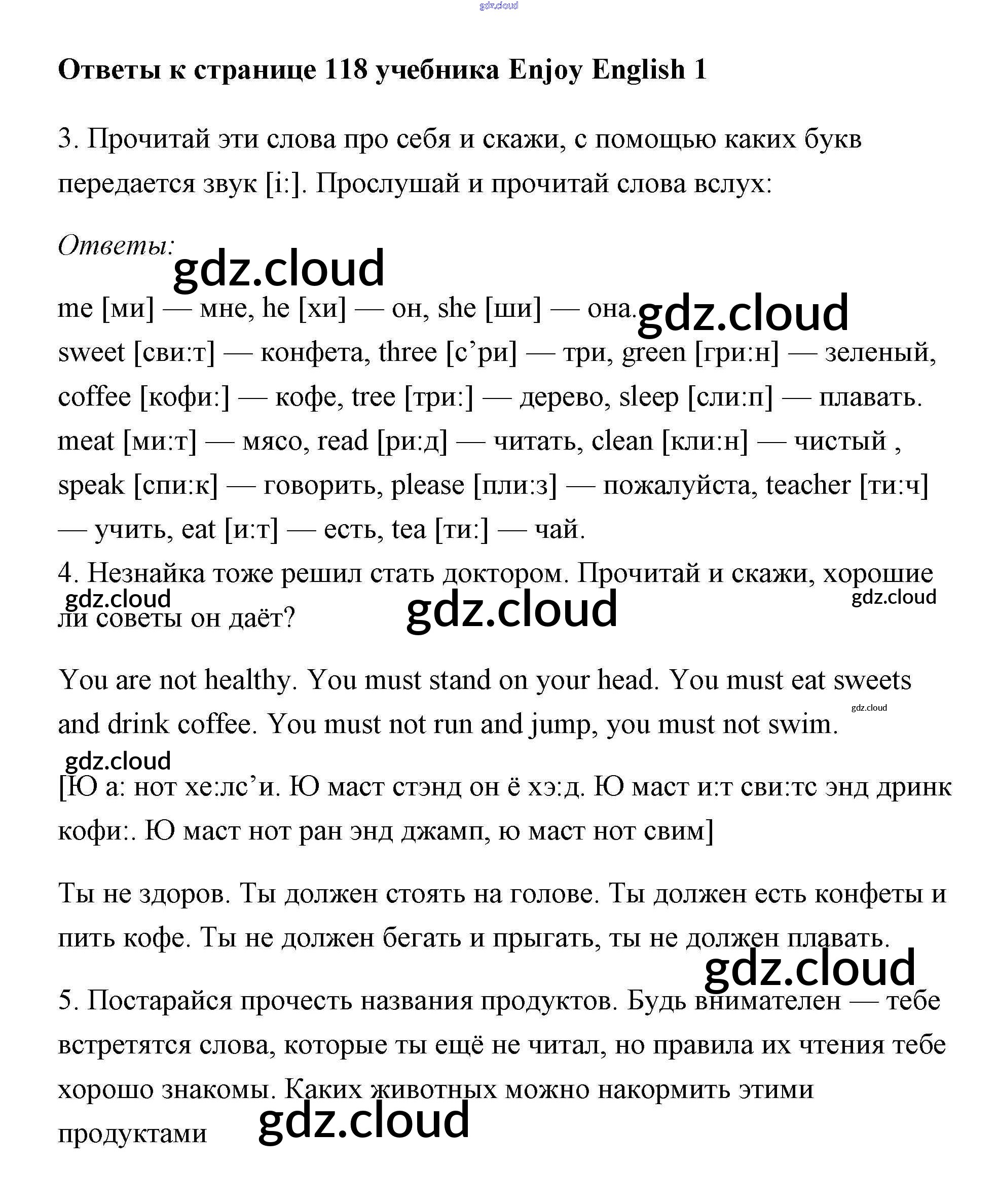 Ответ на задание 118 Учебник Английский язык за 1 (первый) класс Биболетова, Добрынина, Ленская Enjoy English 2010 онлайн и без номера телефона.
