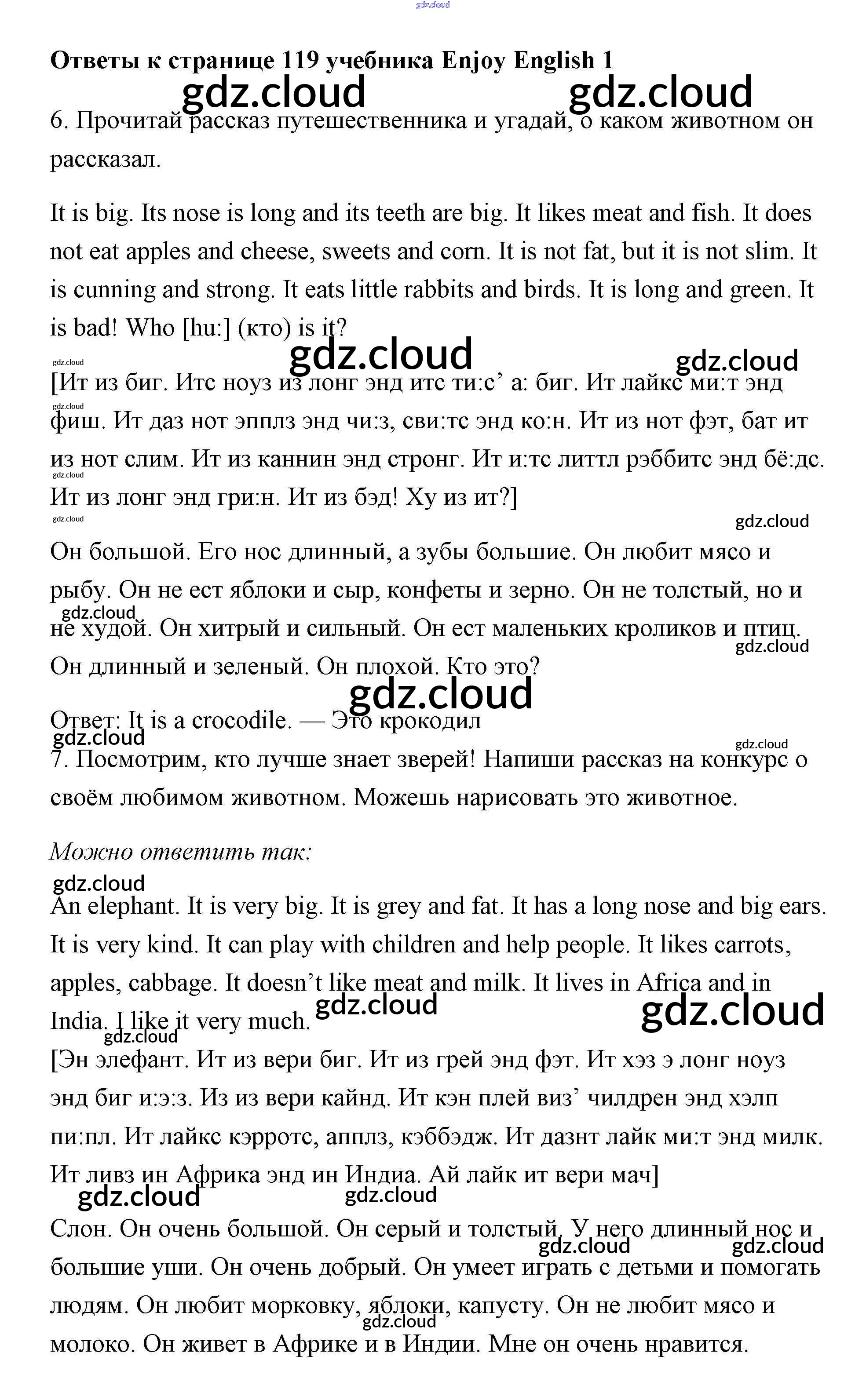 Ответ на задание 119 Учебник Английский язык за 1 (первый) класс Биболетова, Добрынина, Ленская Enjoy English 2010 онлайн и без номера телефона.
