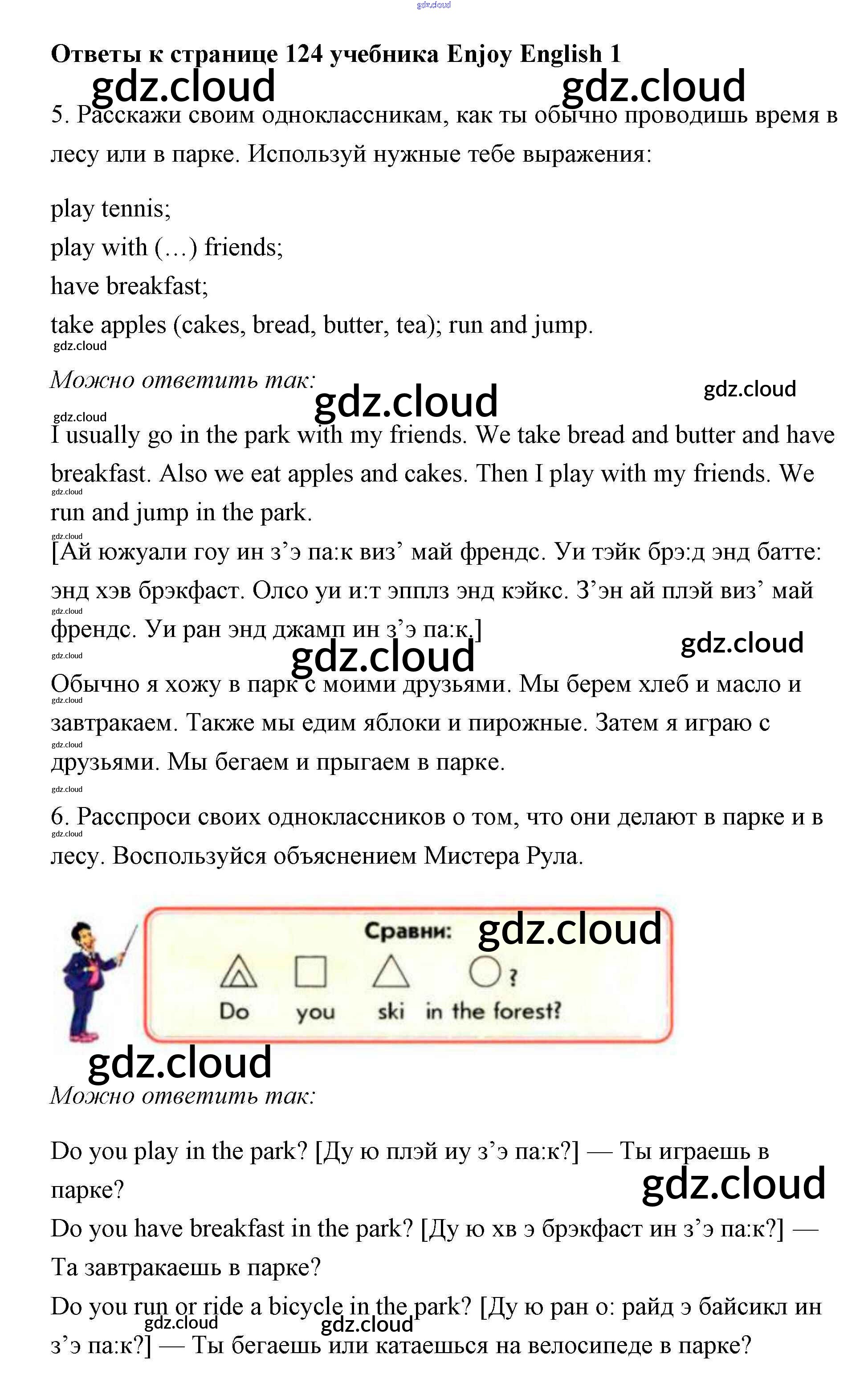 Ответ на задание 124 Учебник Английский язык за 1 (первый) класс Биболетова, Добрынина, Ленская Enjoy English 2010 онлайн и без номера телефона.
