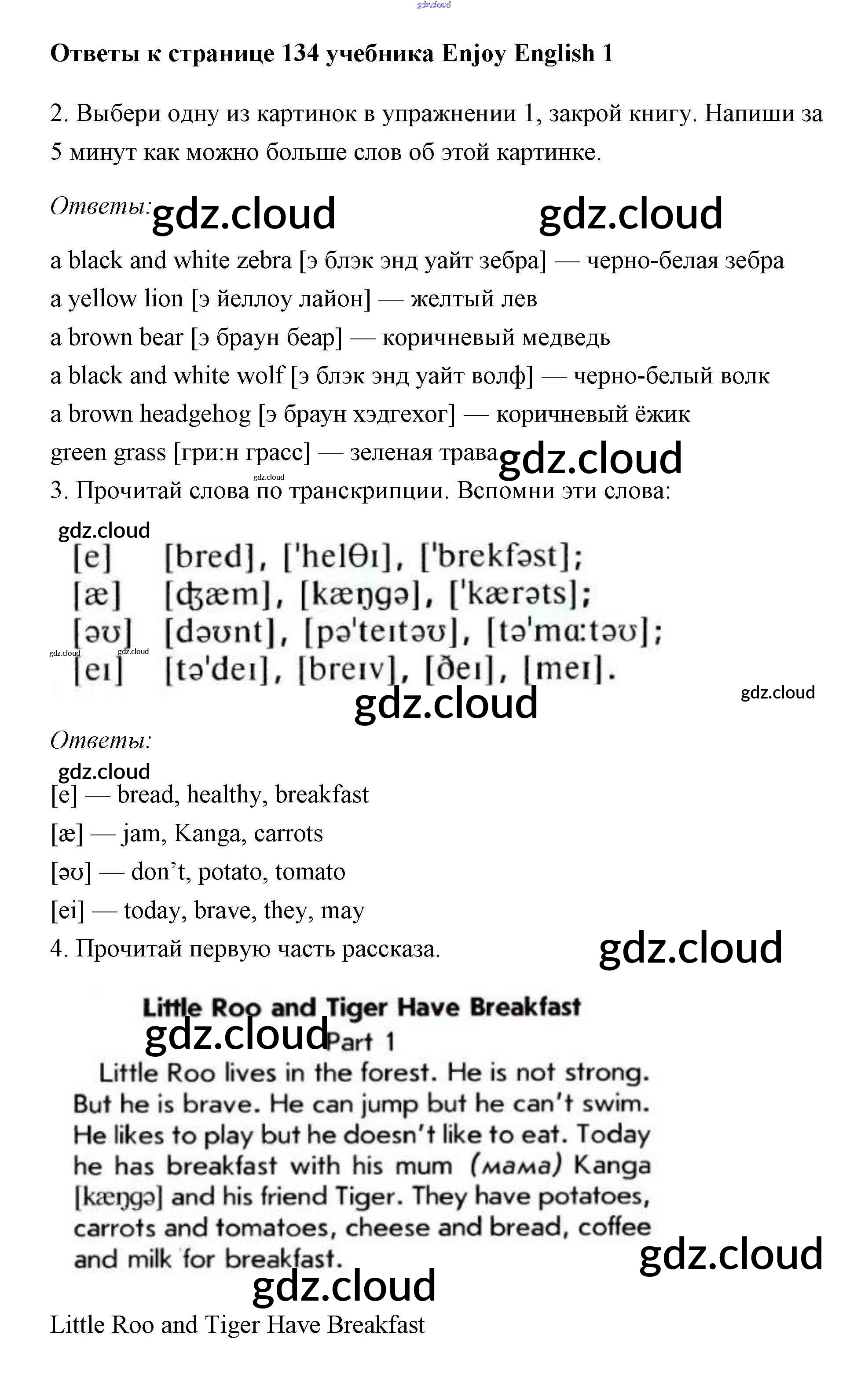 Ответ на задание 134 Учебник Английский язык за 1 (первый) класс Биболетова, Добрынина, Ленская Enjoy English 2010 онлайн и без номера телефона.