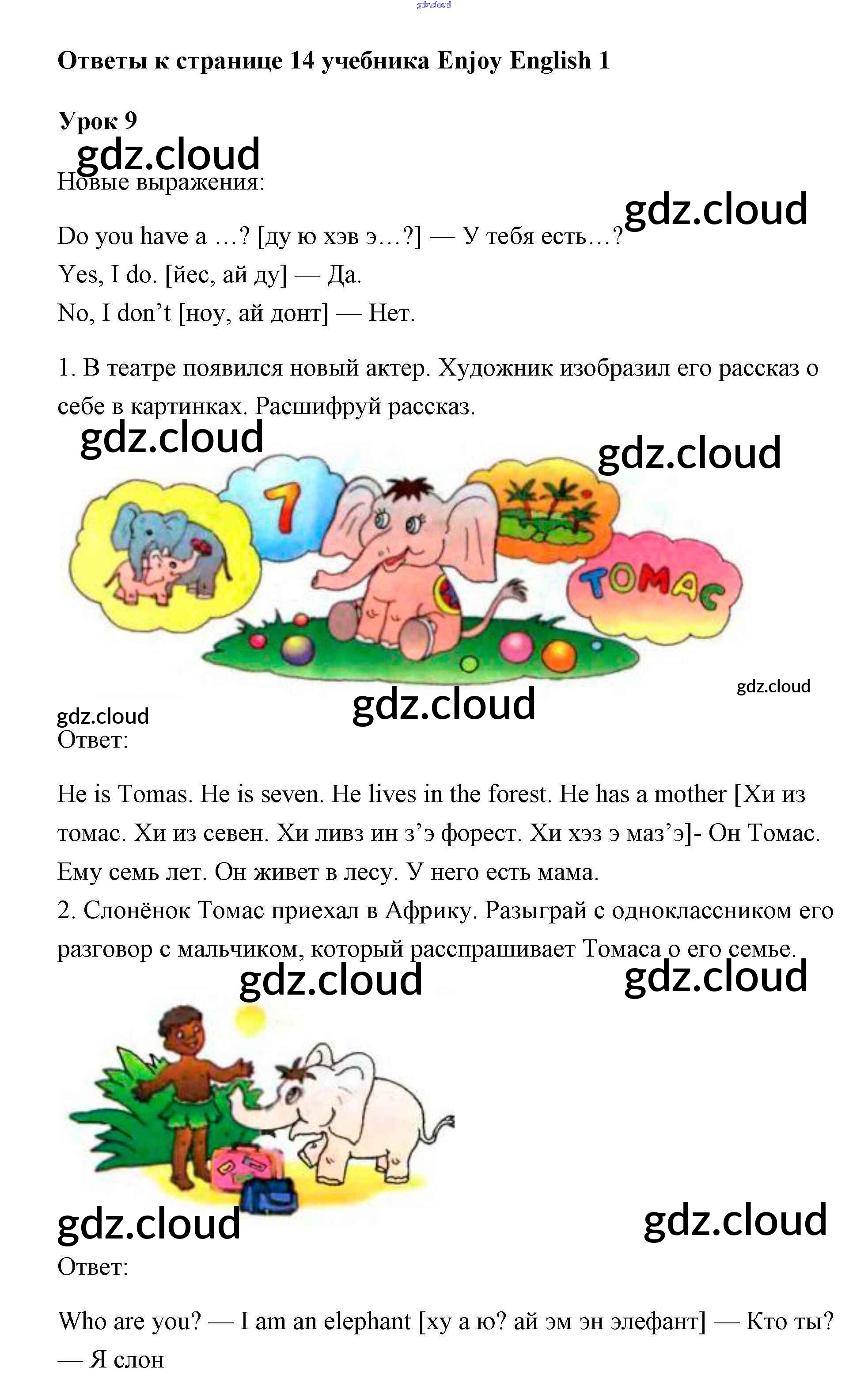 Ответ на задание 14 Учебник Английский язык за 1 (первый) класс Биболетова, Добрынина, Ленская Enjoy English 2010 онлайн и без номера телефона.