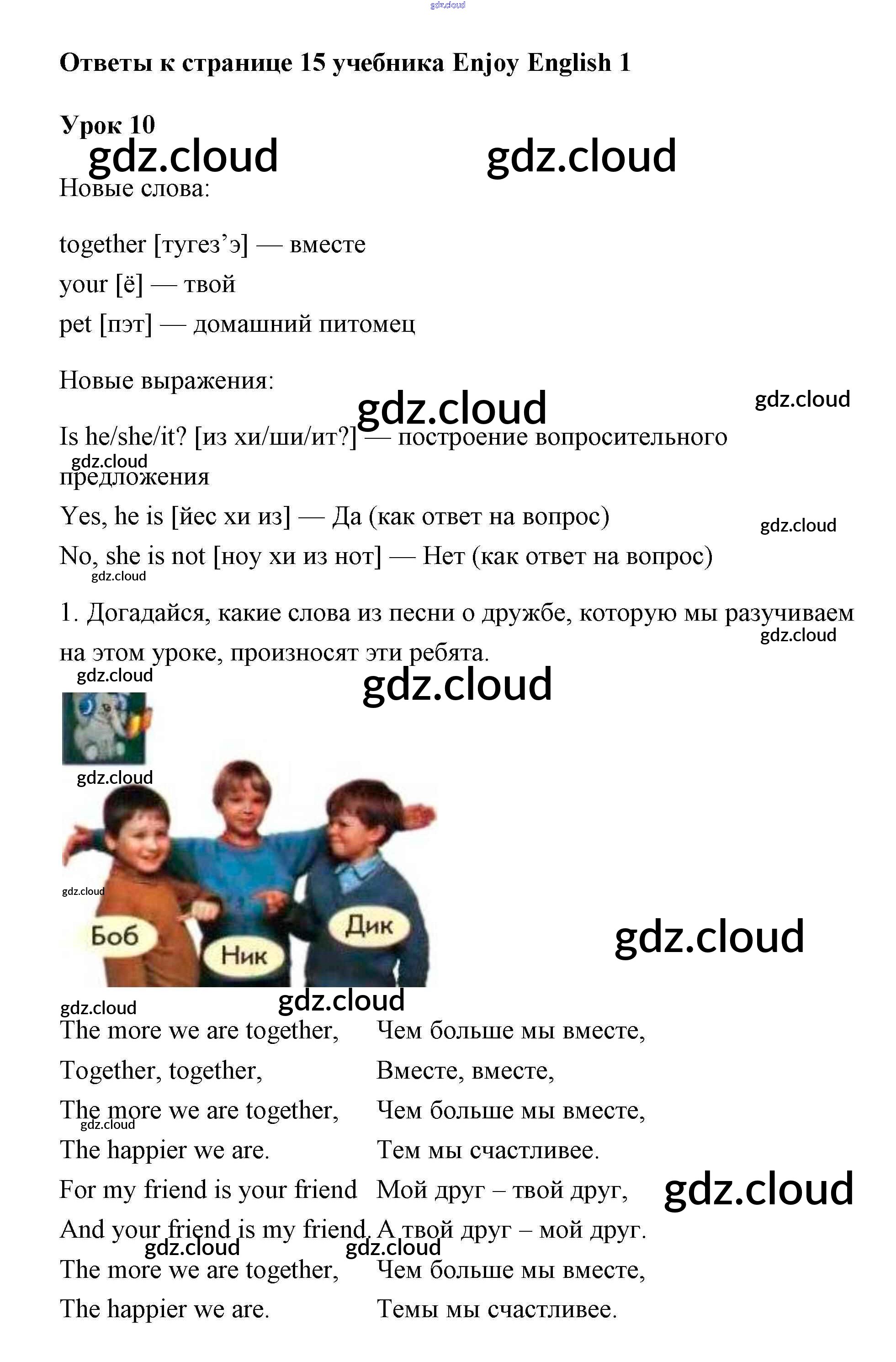 Ответ на задание 15 Учебник Английский язык за 1 (первый) класс Биболетова, Добрынина, Ленская Enjoy English 2010 онлайн и без номера телефона.