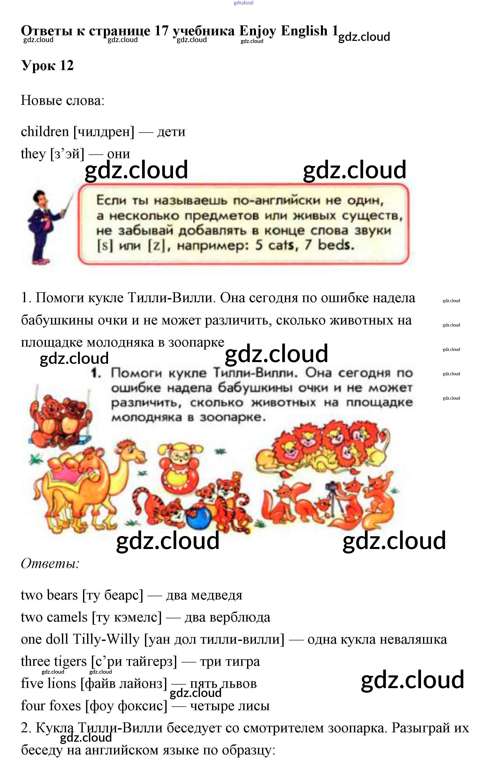 Ответ на задание 17 Учебник Английский язык за 1 (первый) класс Биболетова, Добрынина, Ленская Enjoy English 2010 онлайн и без номера телефона.