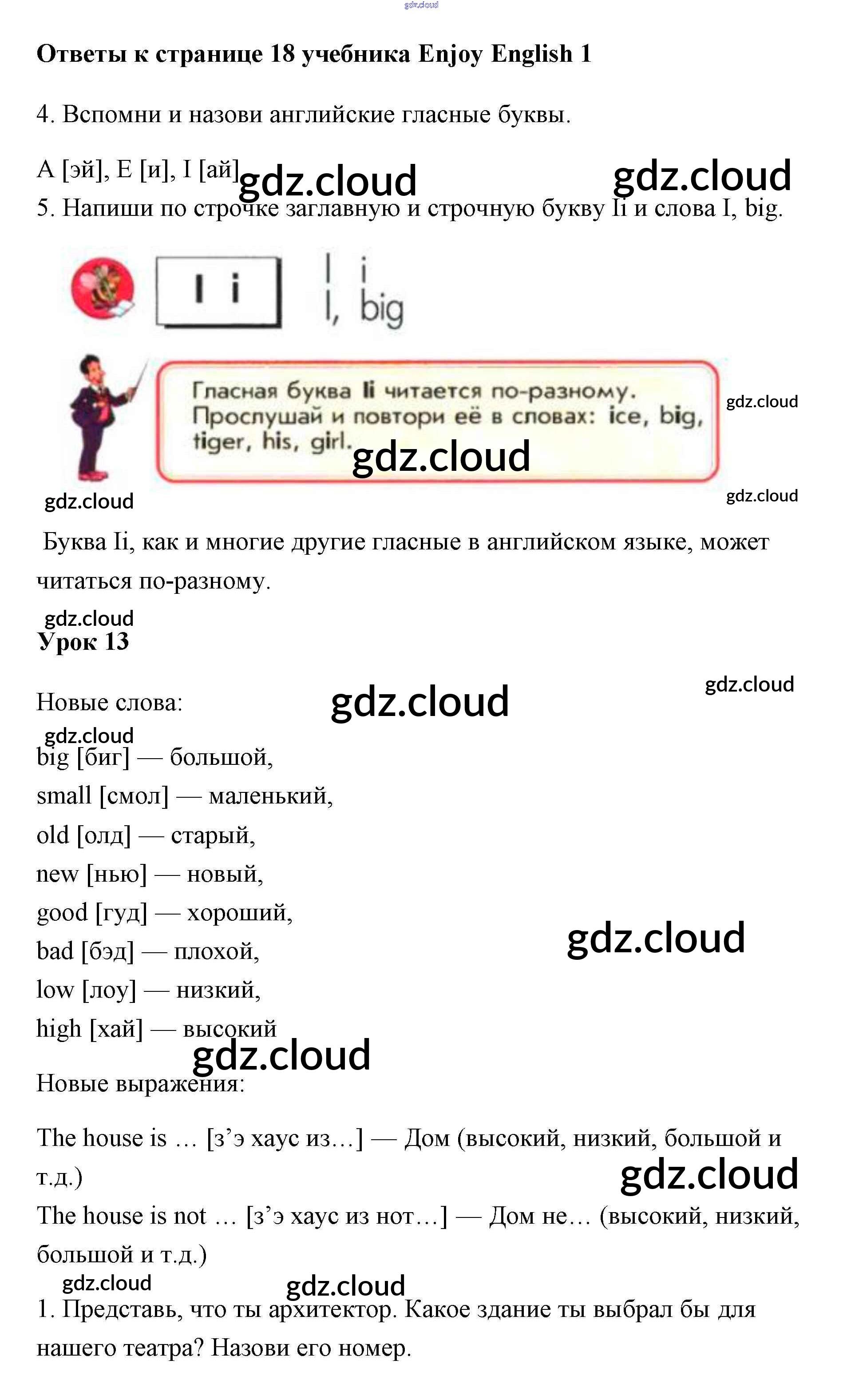 Ответ на задание 18 Учебник Английский язык за 1 (первый) класс Биболетова, Добрынина, Ленская Enjoy English 2010 онлайн и без номера телефона.