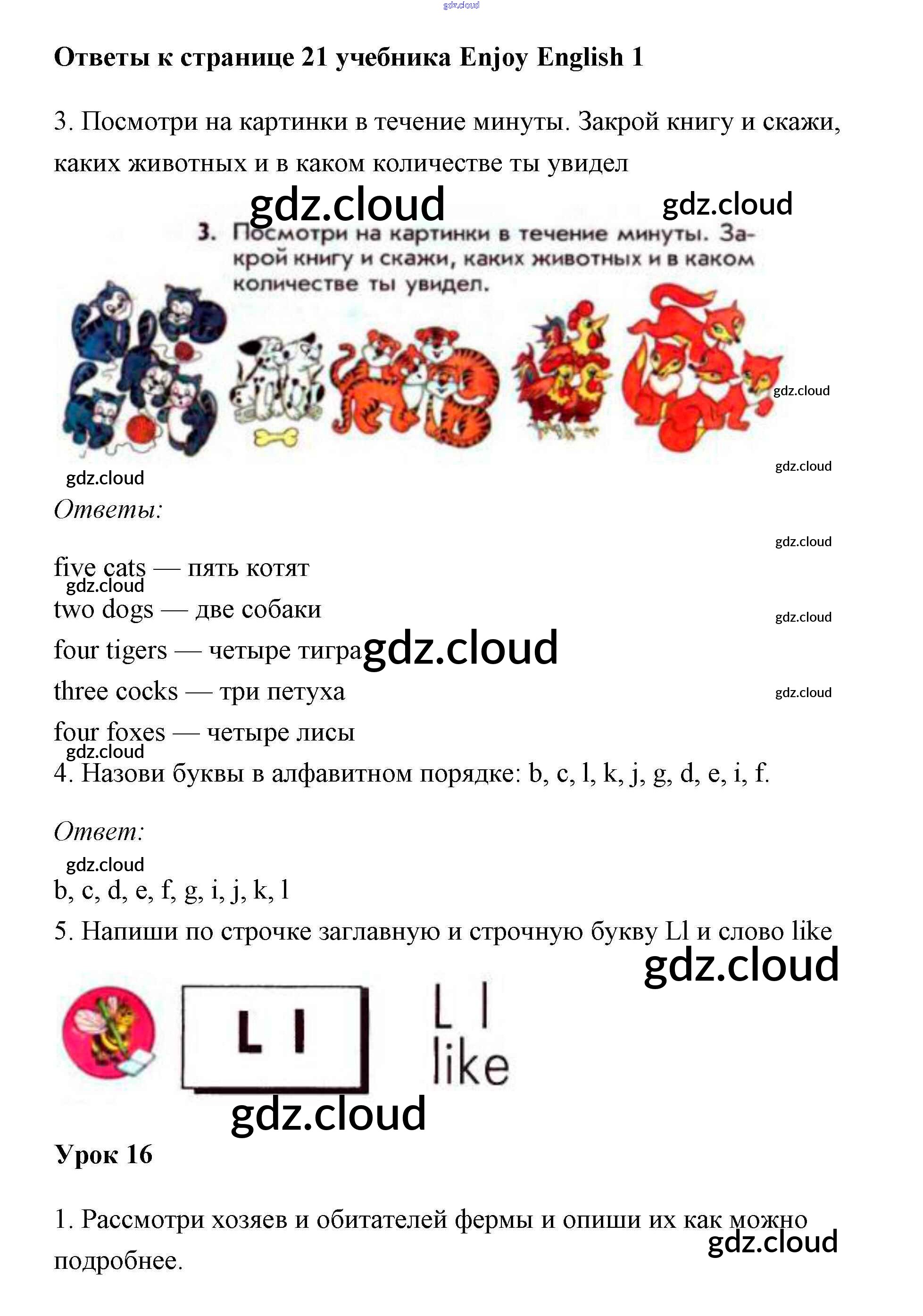 Ответ на задание 21 Учебник Английский язык за 1 (первый) класс Биболетова, Добрынина, Ленская Enjoy English 2010 онлайн и без номера телефона.