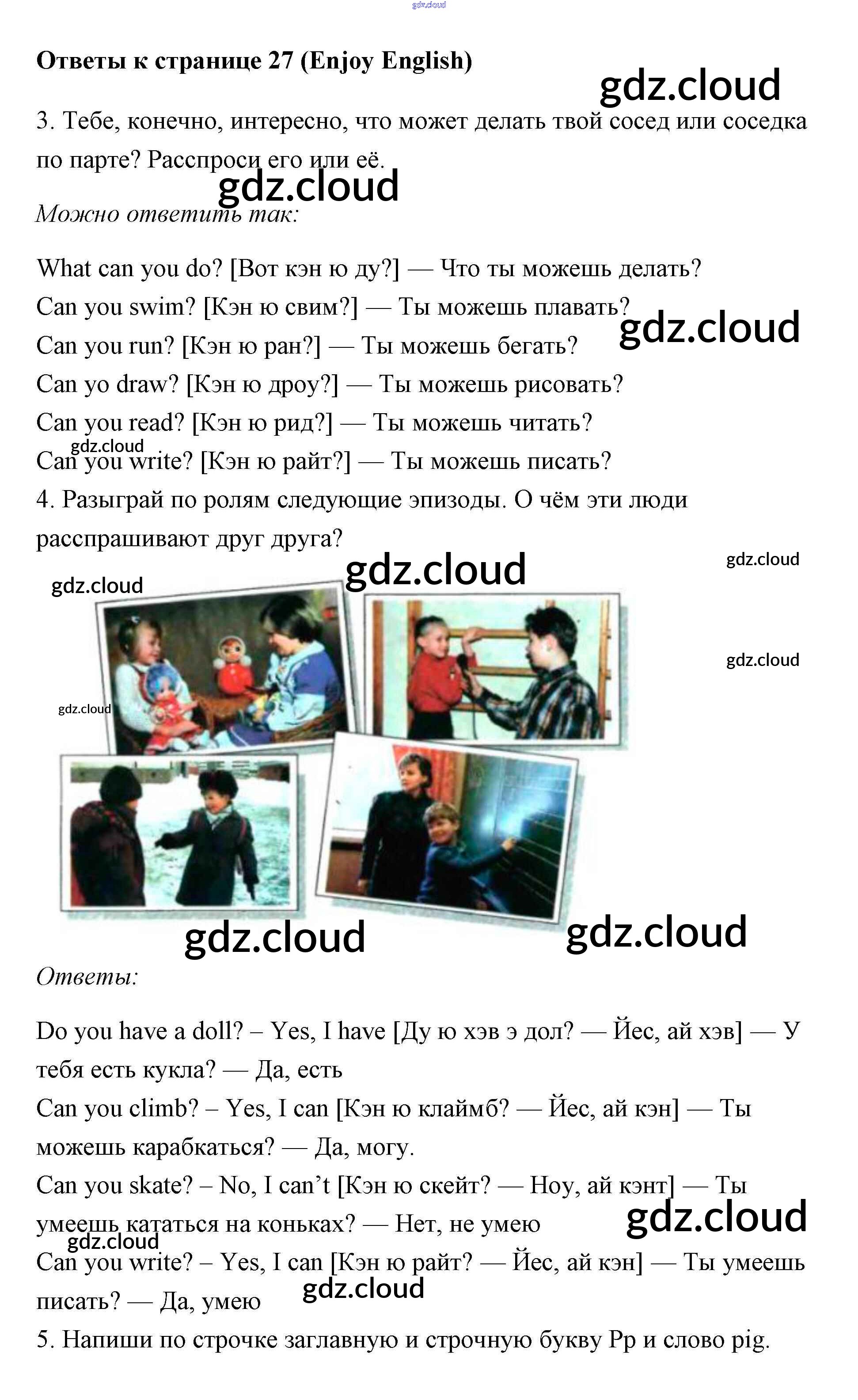 Ответ на задание 27 Учебник Английский язык за 1 (первый) класс Биболетова, Добрынина, Ленская Enjoy English 2010 онлайн и без номера телефона.