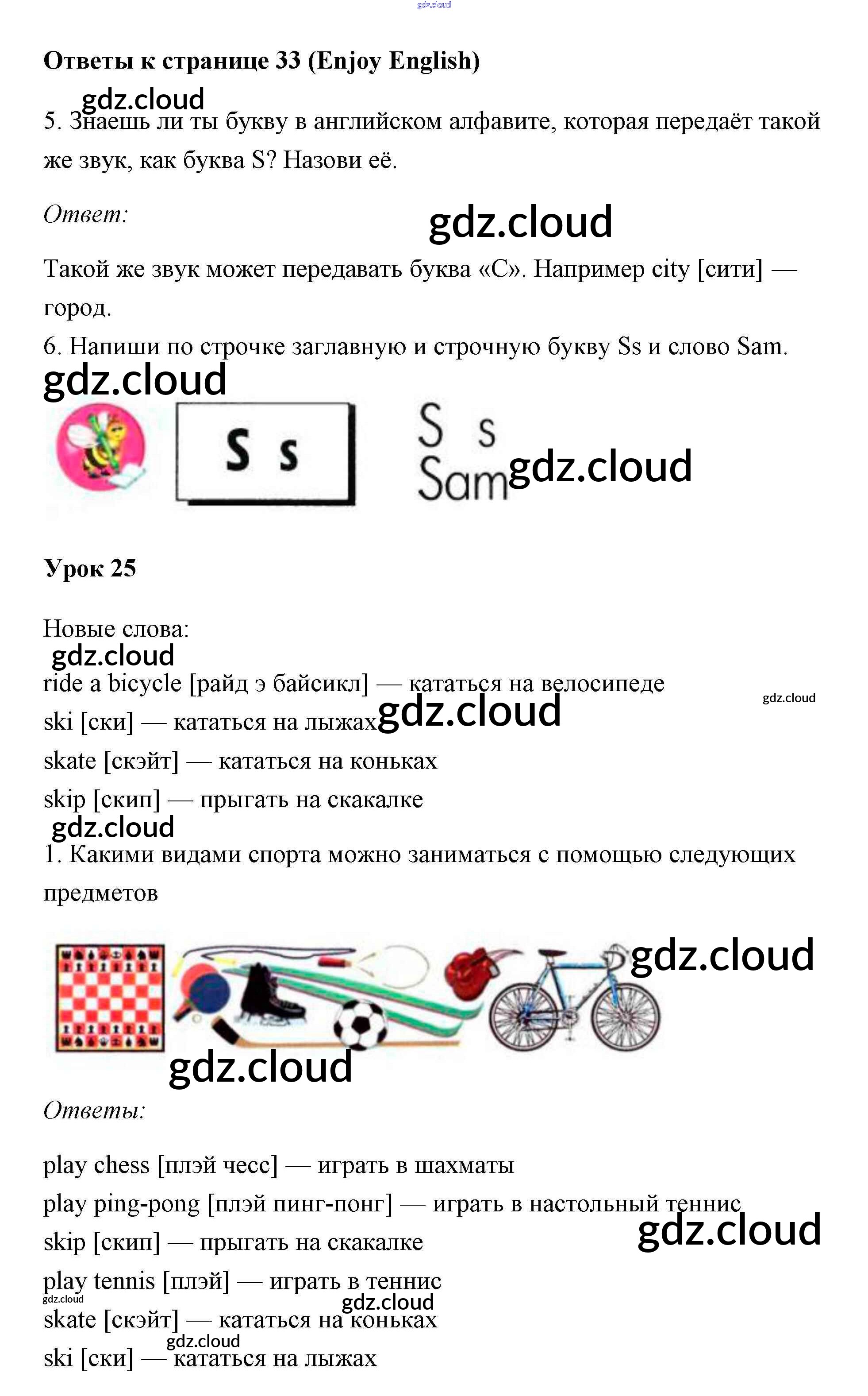 Ответ на задание 33 Учебник Английский язык за 1 (первый) класс Биболетова, Добрынина, Ленская Enjoy English 2010 онлайн и без номера телефона.