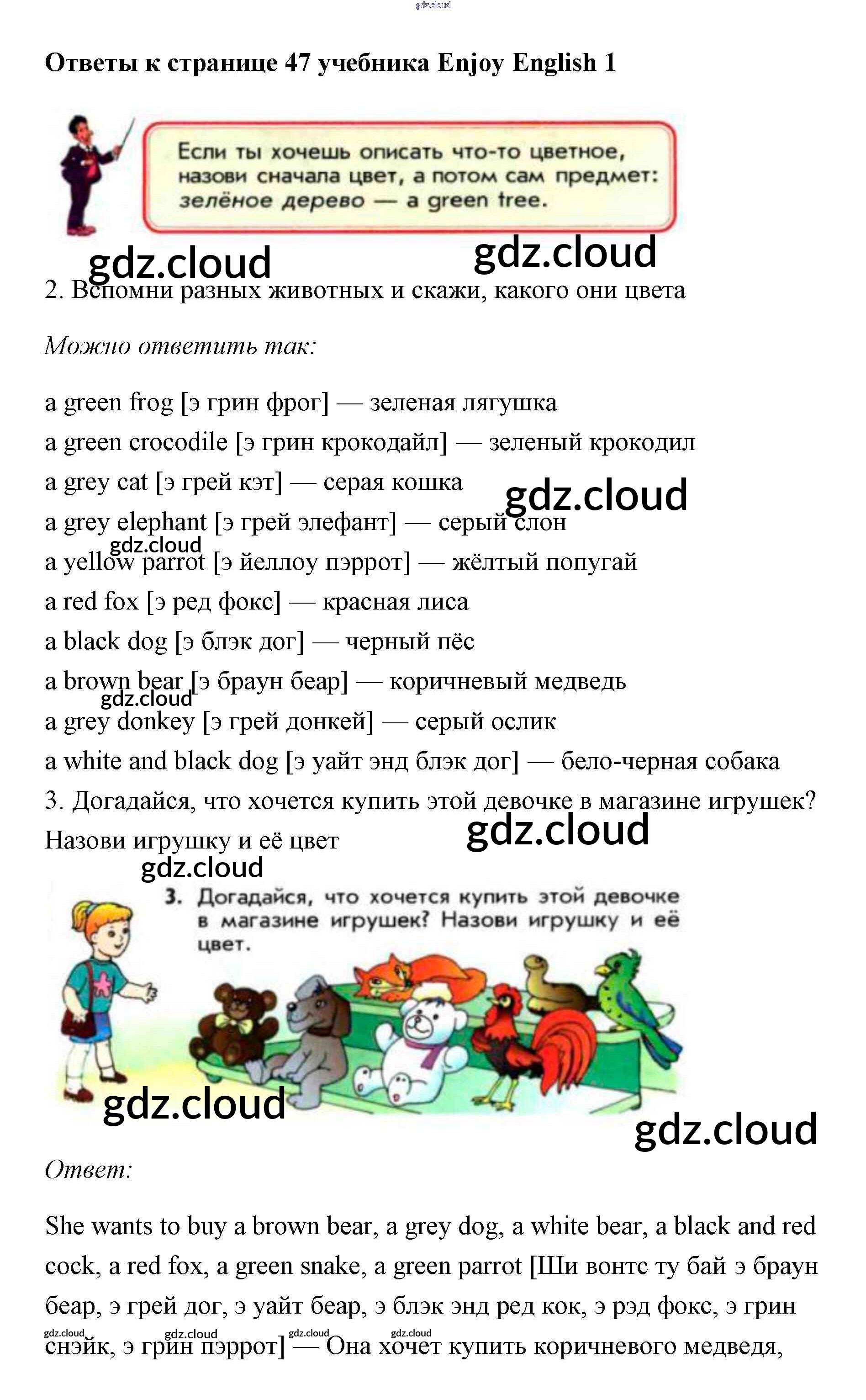 Ответ на задание 47 Учебник Английский язык за 1 (первый) класс Биболетова, Добрынина, Ленская Enjoy English 2010 онлайн и без номера телефона.