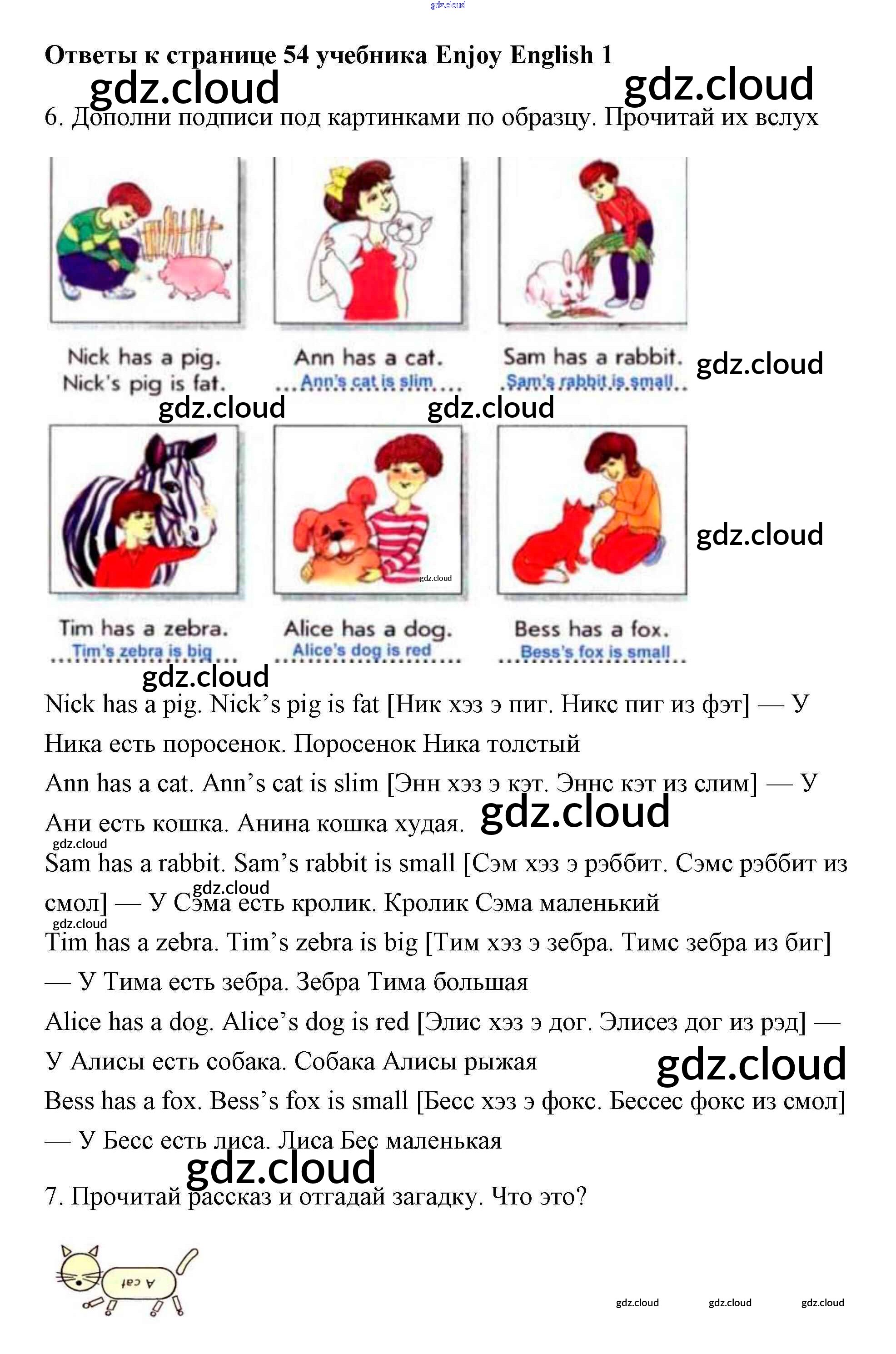 Ответ на задание 54 Учебник Английский язык за 1 (первый) класс Биболетова, Добрынина, Ленская Enjoy English 2010 онлайн и без номера телефона.