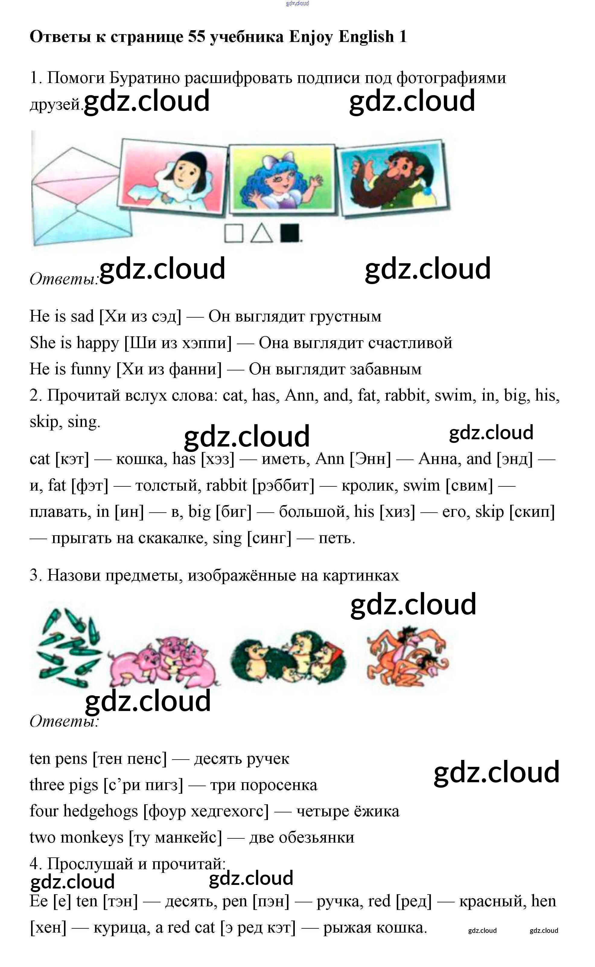 Ответ на задание 55 Учебник Английский язык за 1 (первый) класс Биболетова, Добрынина, Ленская Enjoy English 2010 онлайн и без номера телефона.