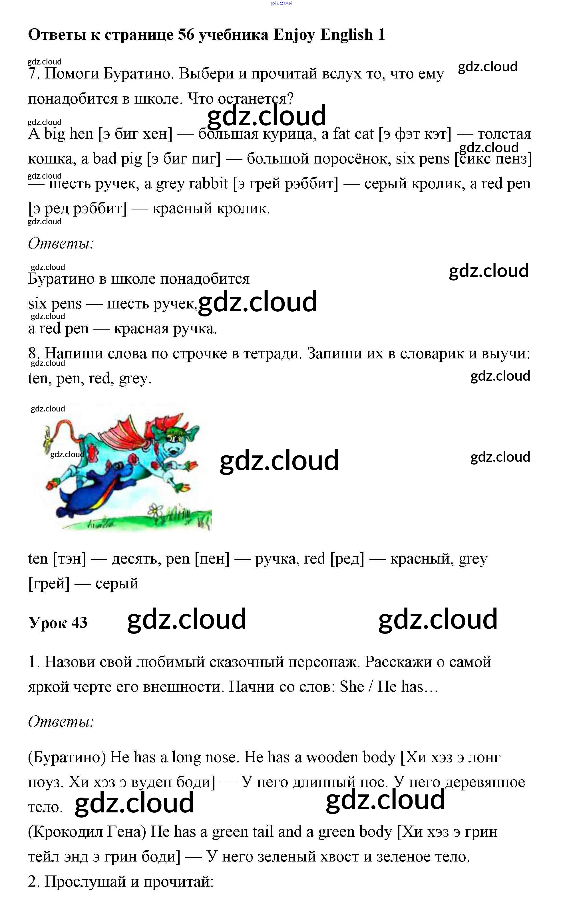 Ответ на задание 56 Учебник Английский язык за 1 (первый) класс Биболетова, Добрынина, Ленская Enjoy English 2010 онлайн и без номера телефона.