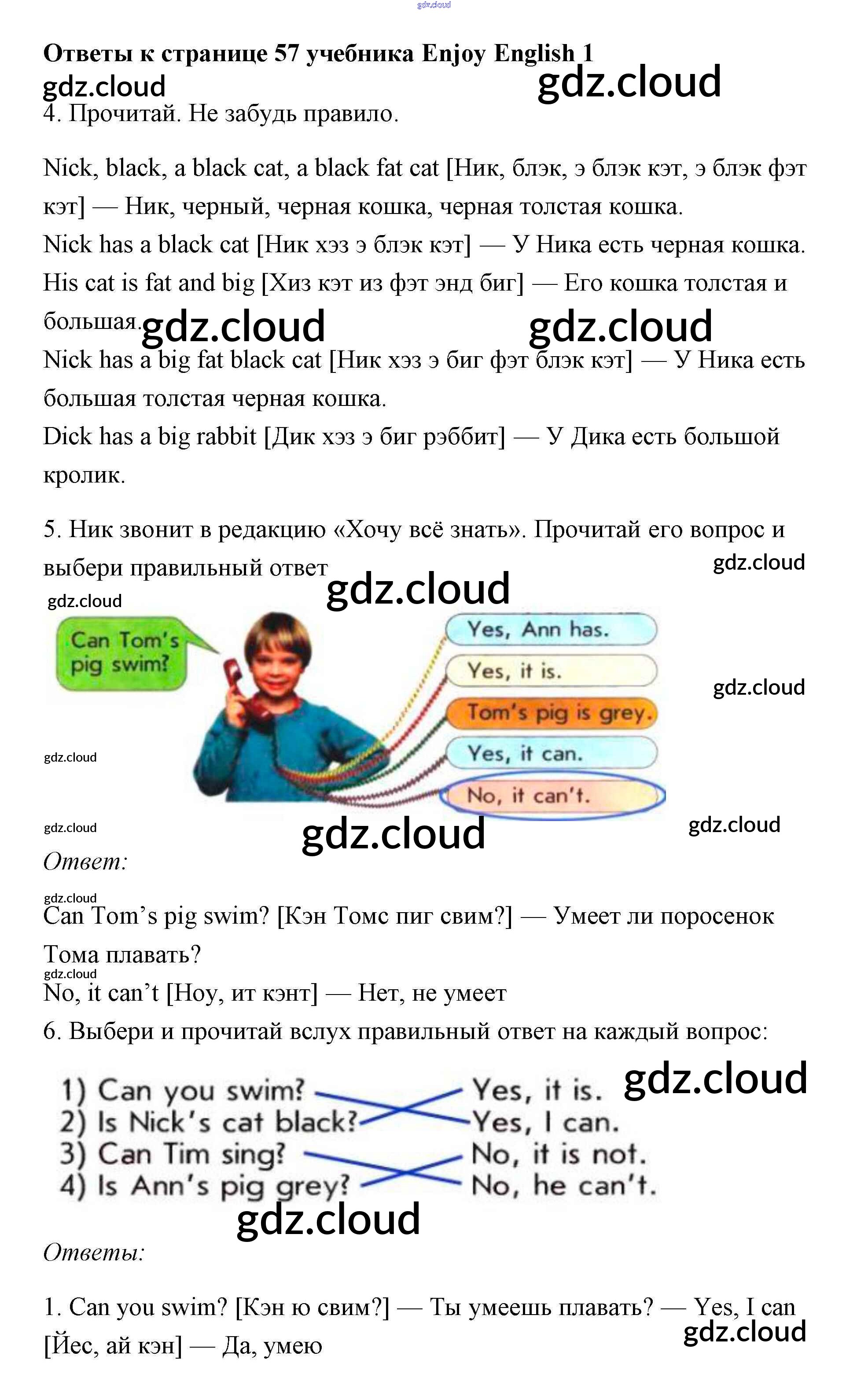 Ответ на задание 57 Учебник Английский язык за 1 (первый) класс Биболетова, Добрынина, Ленская Enjoy English 2010 онлайн и без номера телефона.