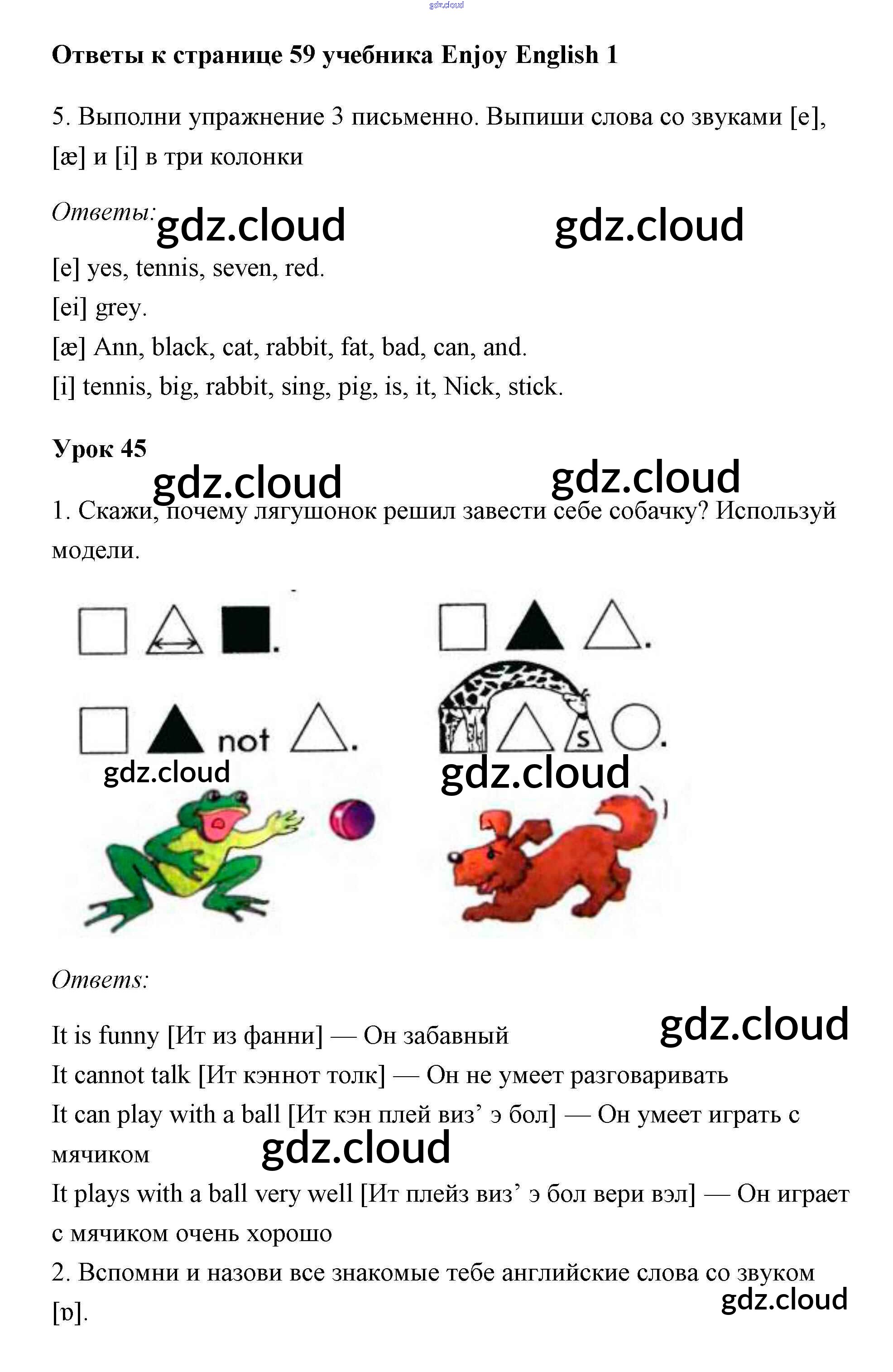 Ответ на задание 59 Учебник Английский язык за 1 (первый) класс Биболетова, Добрынина, Ленская Enjoy English 2010 онлайн и без номера телефона.