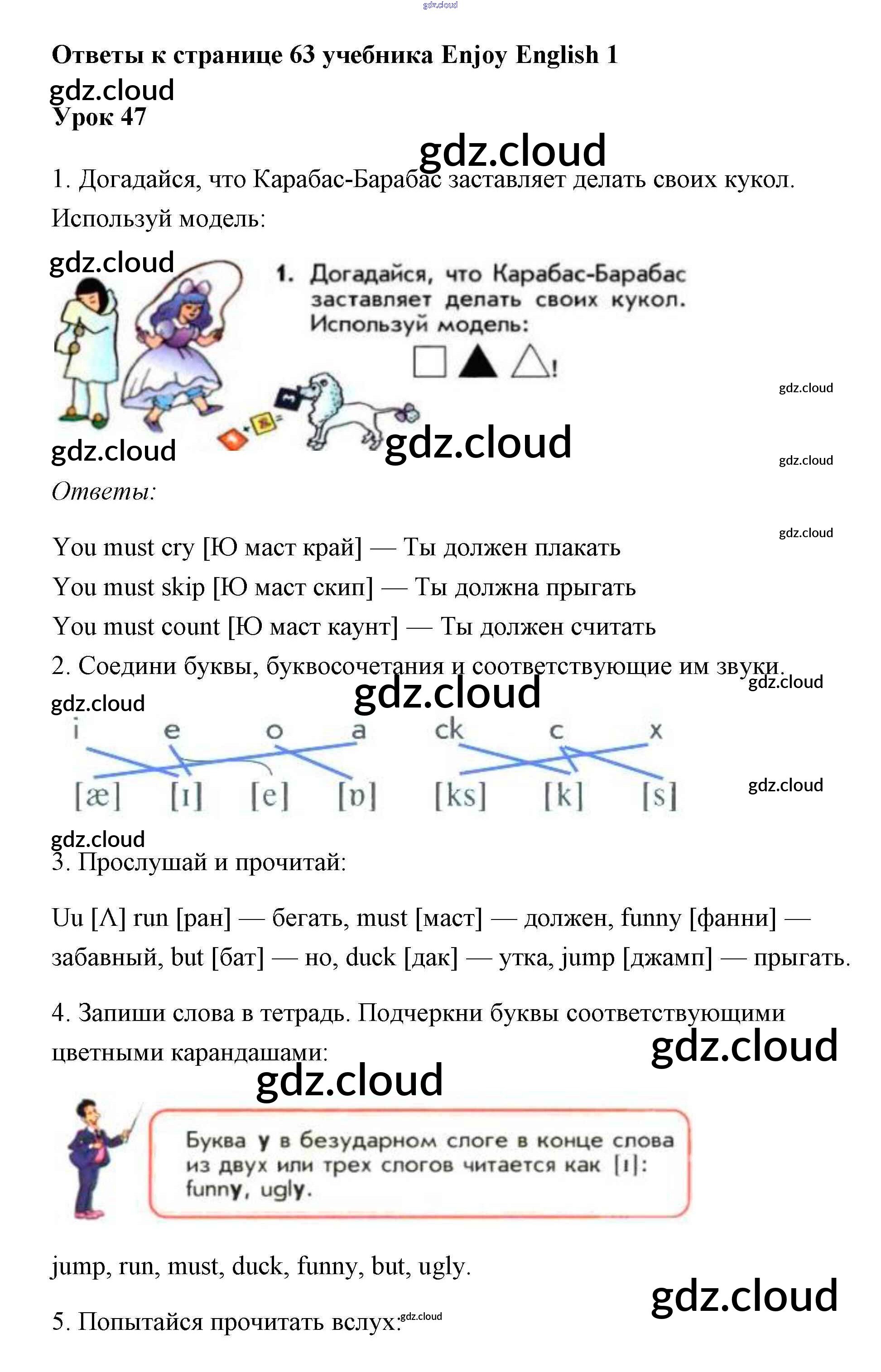 Ответ на задание 63 Учебник Английский язык за 1 (первый) класс Биболетова, Добрынина, Ленская Enjoy English 2010 онлайн и без номера телефона.