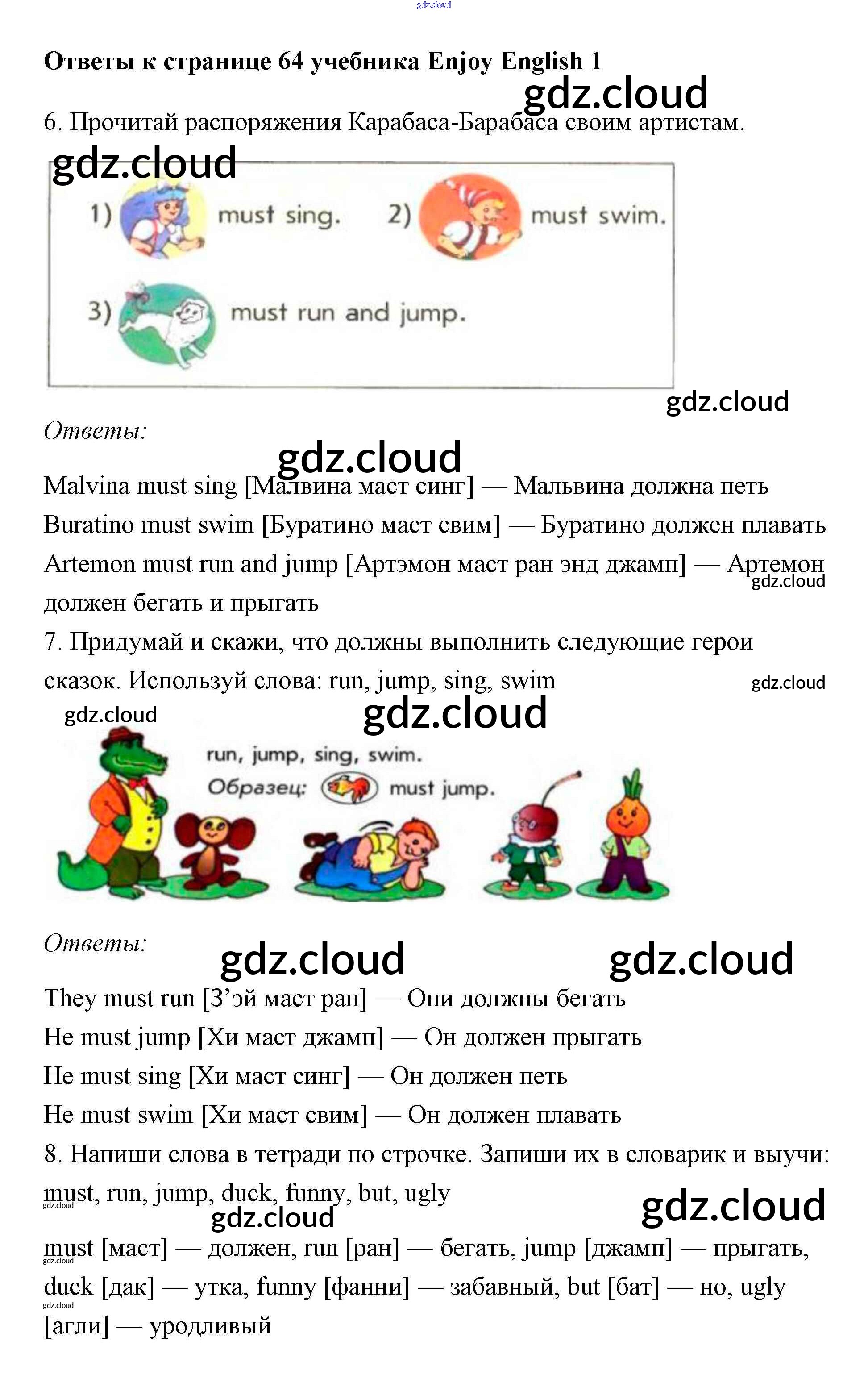 Ответ на задание 64 Учебник Английский язык за 1 (первый) класс Биболетова, Добрынина, Ленская Enjoy English 2010 онлайн и без номера телефона.