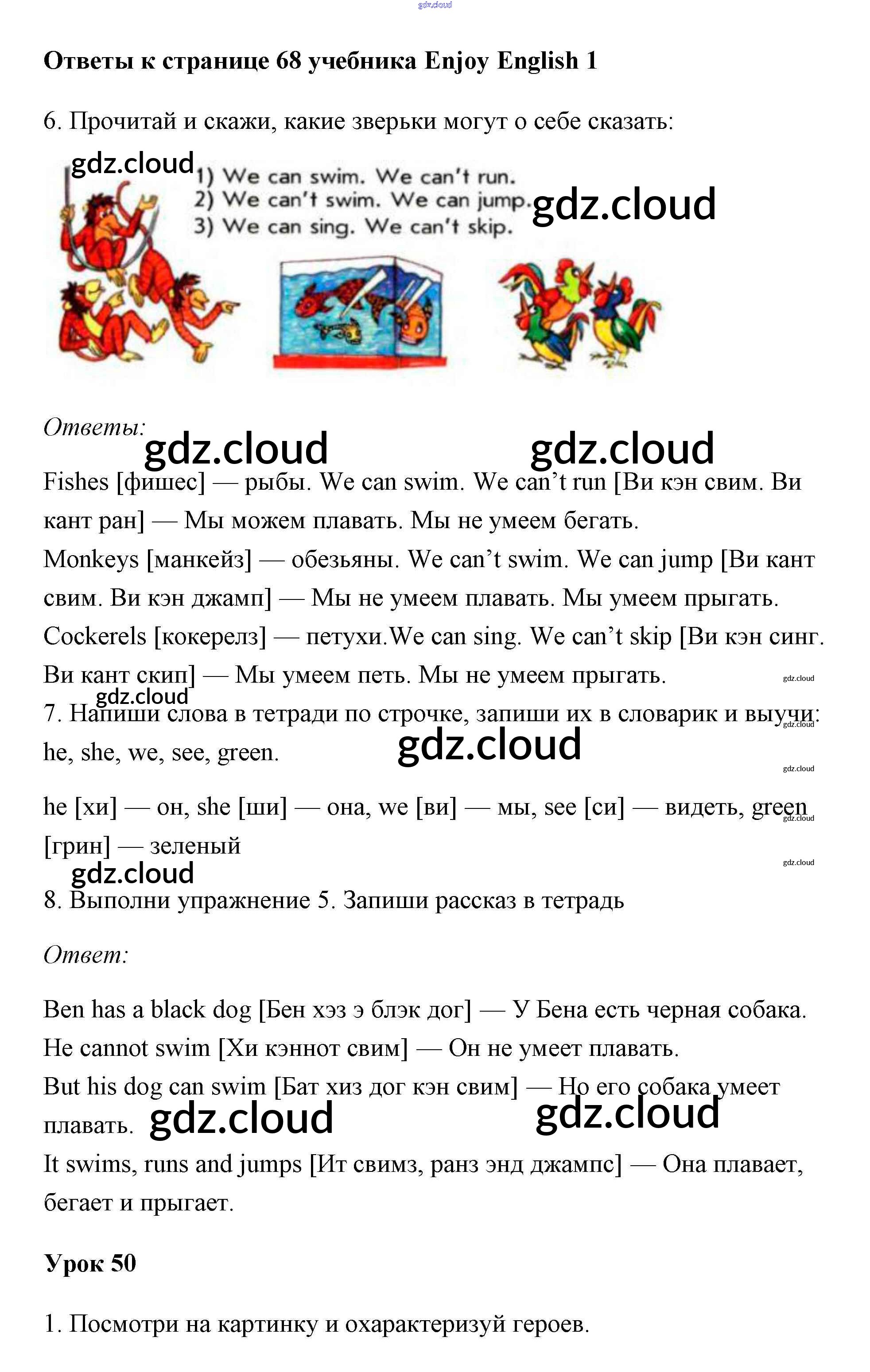 Ответ на задание 68 Учебник Английский язык за 1 (первый) класс Биболетова, Добрынина, Ленская Enjoy English 2010 онлайн и без номера телефона.