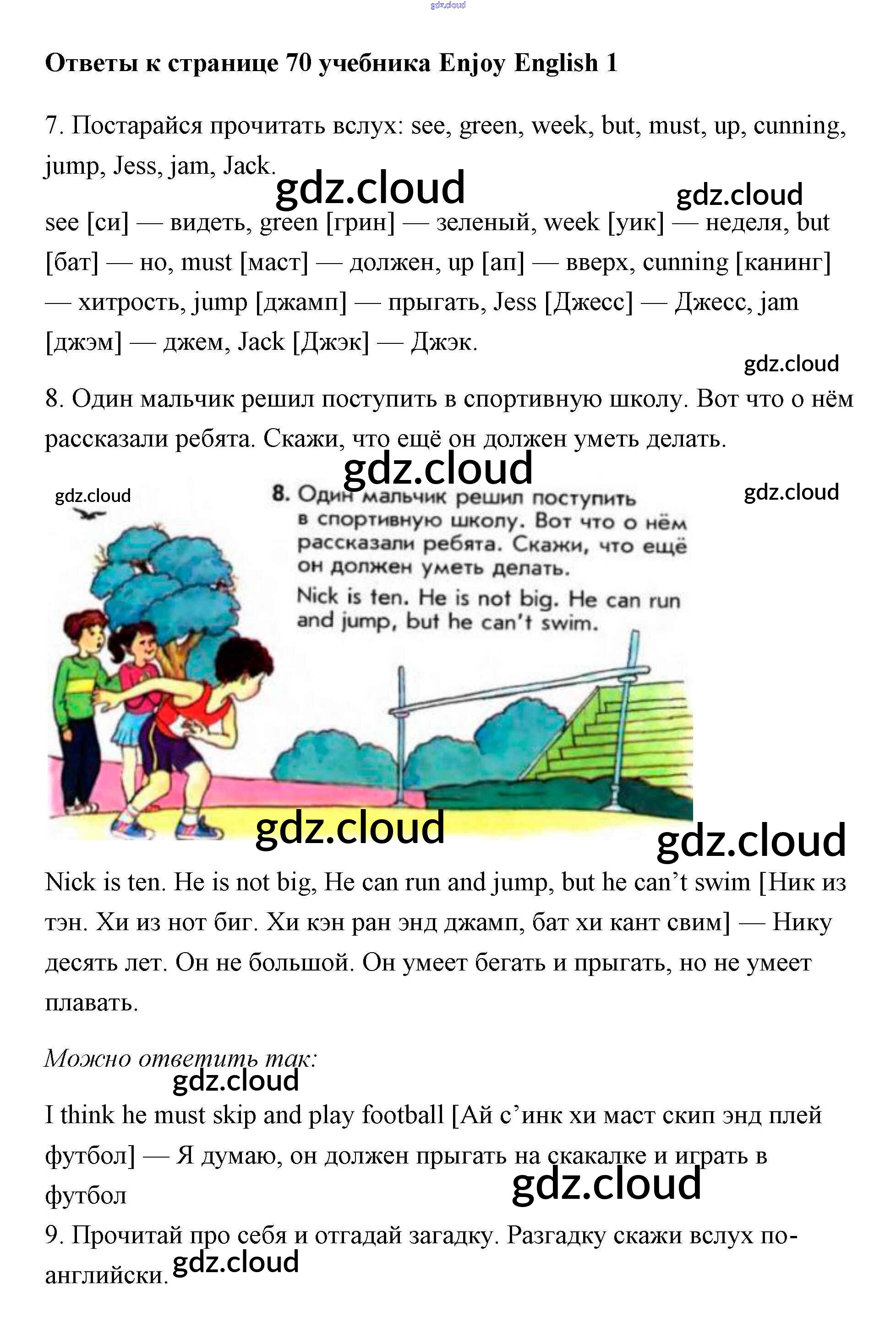 Ответ на задание 70 Учебник Английский язык за 1 (первый) класс Биболетова, Добрынина, Ленская Enjoy English 2010 онлайн и без номера телефона.