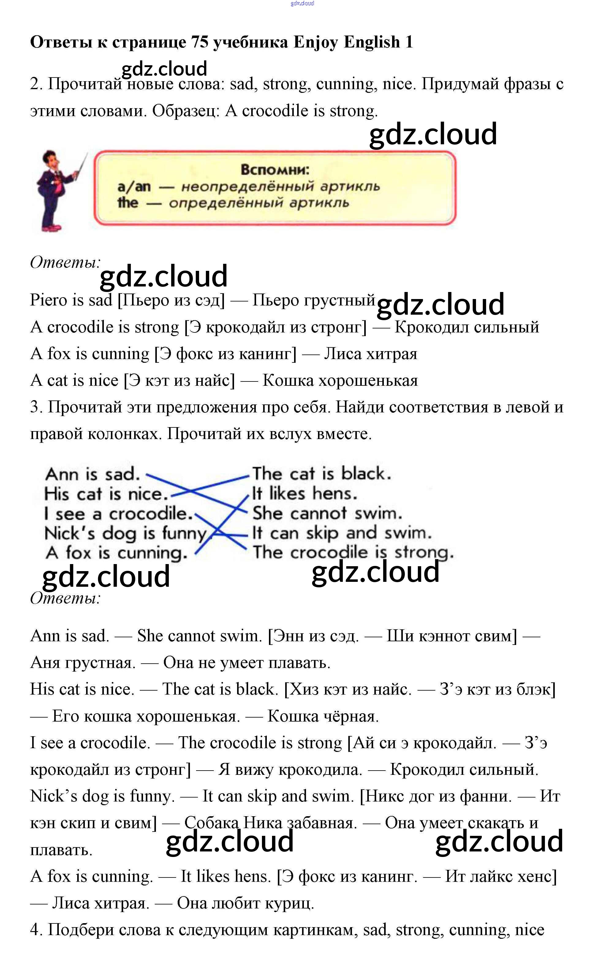 Ответ на задание 75 Учебник Английский язык за 1 (первый) класс Биболетова, Добрынина, Ленская Enjoy English 2010 онлайн и без номера телефона.