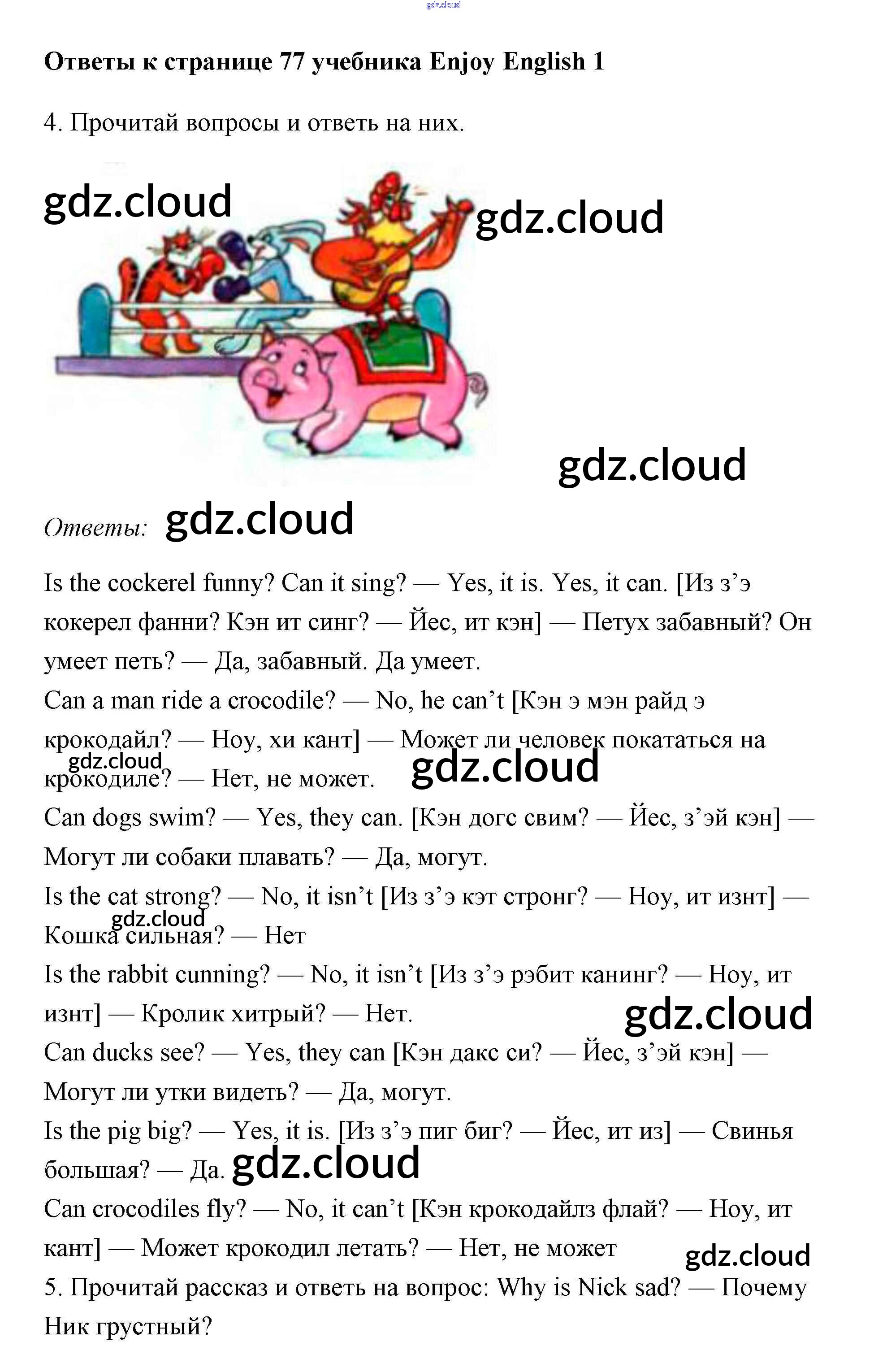 Ответ на задание 77 Учебник Английский язык за 1 (первый) класс Биболетова, Добрынина, Ленская Enjoy English 2010 онлайн и без номера телефона.