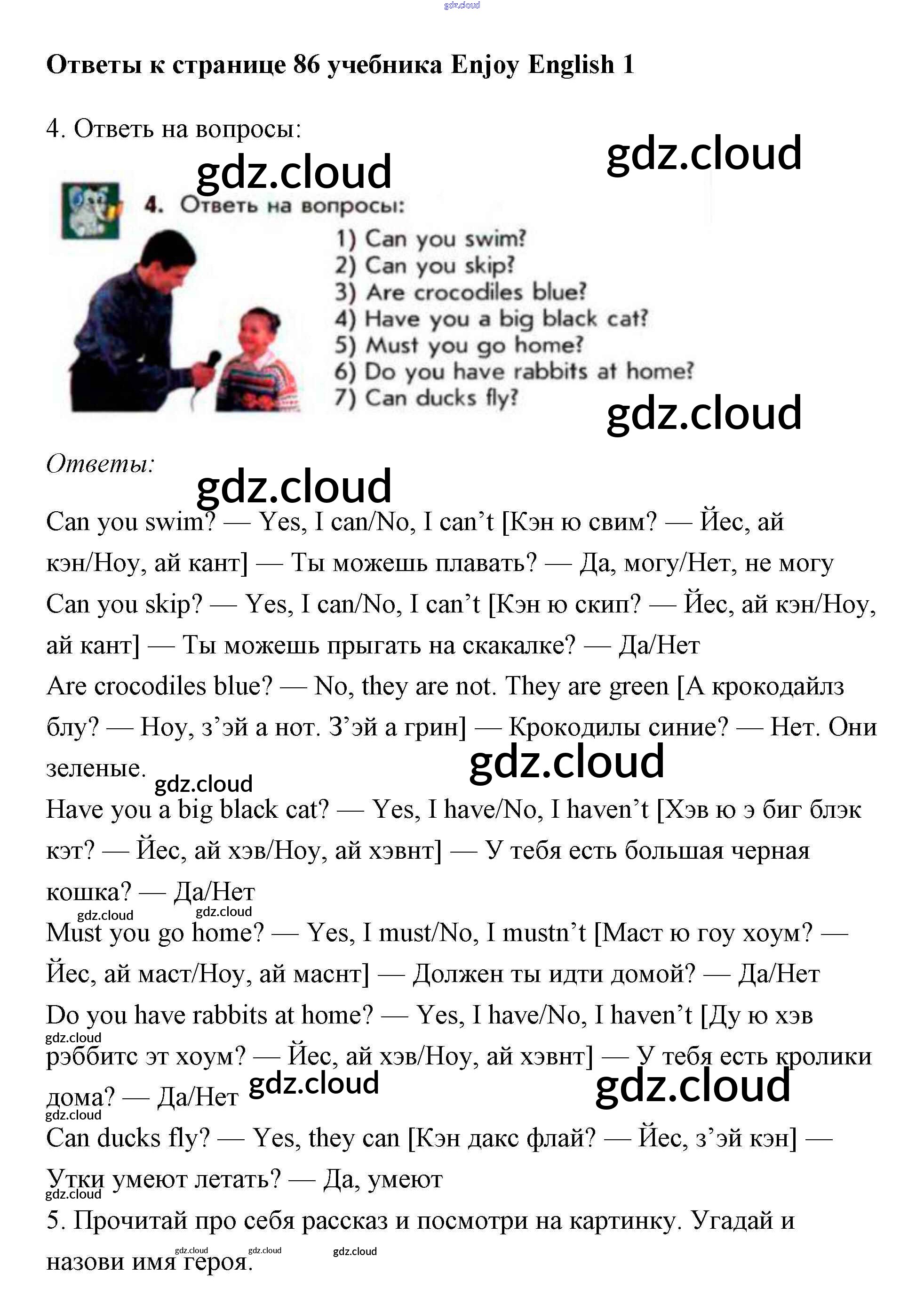 Ответ на задание 86 Учебник Английский язык за 1 (первый) класс Биболетова, Добрынина, Ленская Enjoy English 2010 онлайн и без номера телефона.