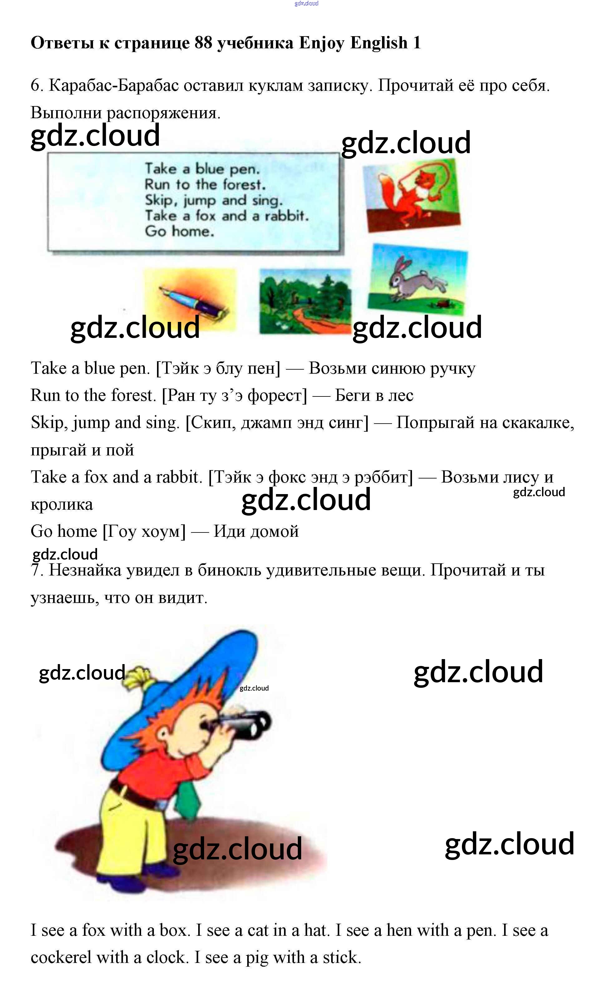 Ответ на задание 88 Учебник Английский язык за 1 (первый) класс Биболетова, Добрынина, Ленская Enjoy English 2010 онлайн и без номера телефона.