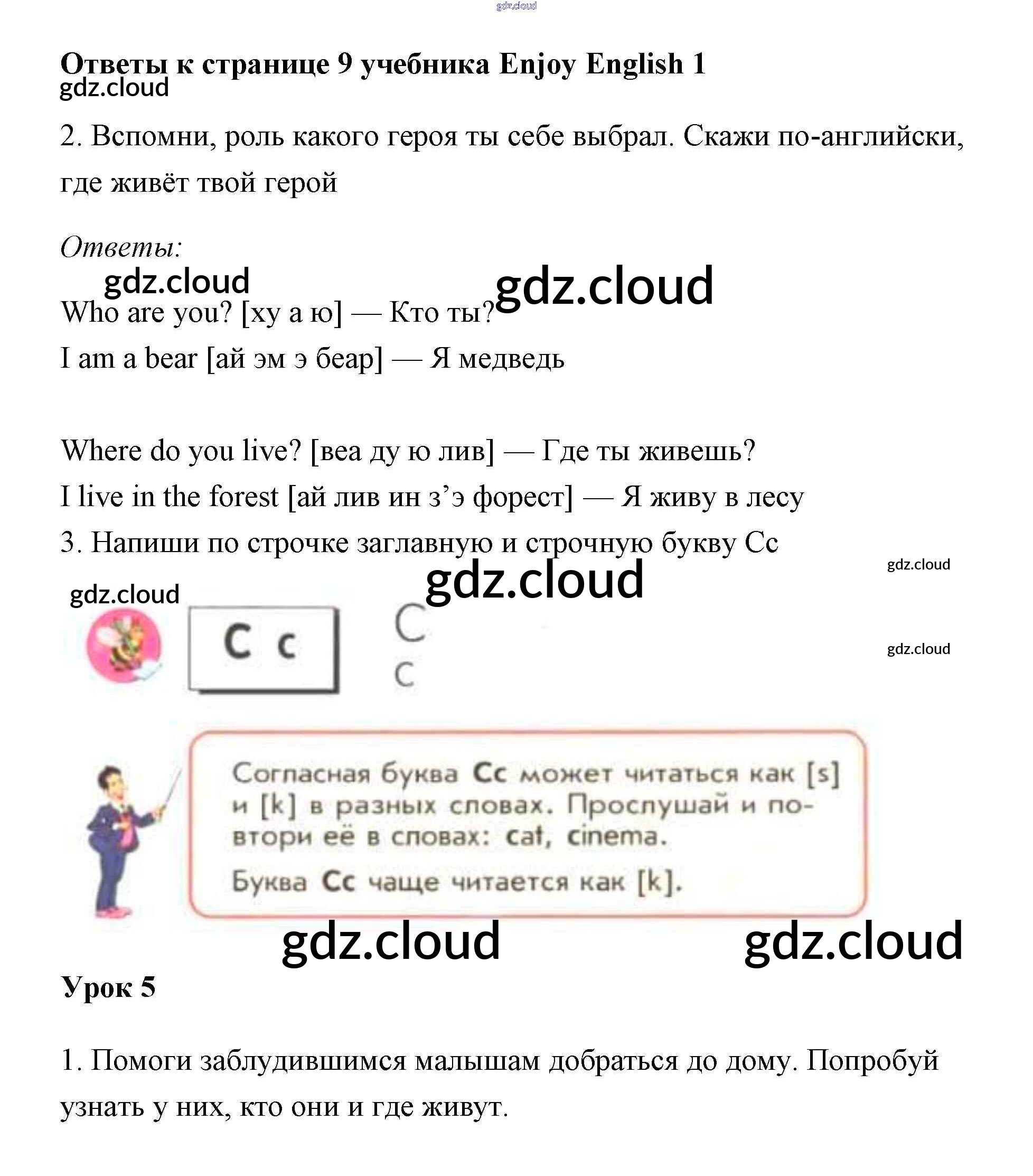 Ответ на задание 9 Учебник Английский язык за 1 (первый) класс Биболетова, Добрынина, Ленская Enjoy English 2010 онлайн и без номера телефона.