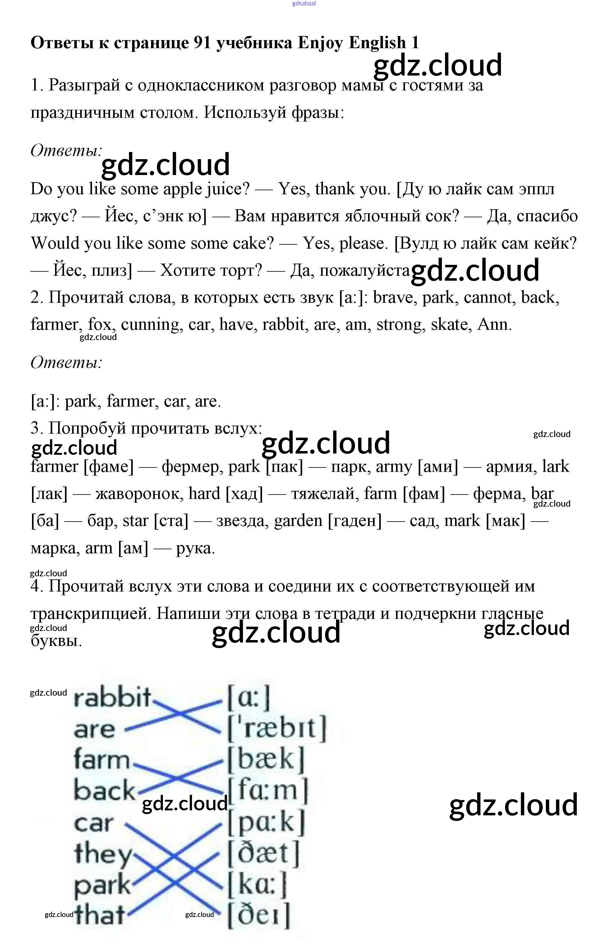 Ответ на задание 91 Учебник Английский язык за 1 (первый) класс Биболетова, Добрынина, Ленская Enjoy English 2010 онлайн и без номера телефона.
