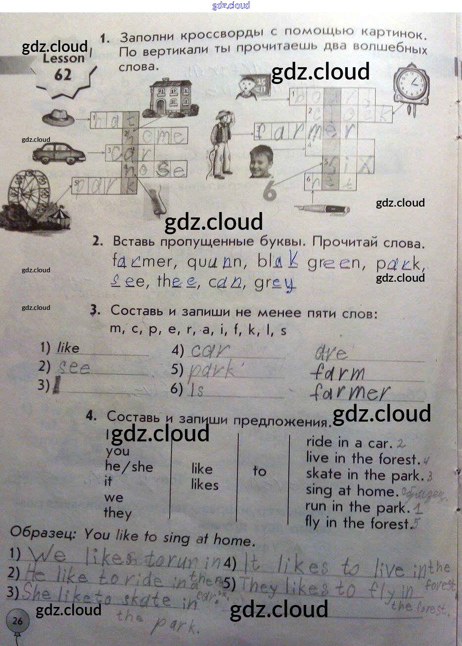Ответ на задание стр.26 Рабочая тетрадь Английский язык за 1 (первый) класс Биболетова, Трубанева Enjoy English 2015 Часть 2
