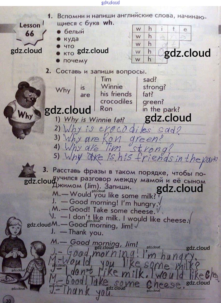 Ответ на задание стр.30 Рабочая тетрадь Английский язык за 1 (первый) класс Биболетова, Трубанева Enjoy English 2015 Часть 2