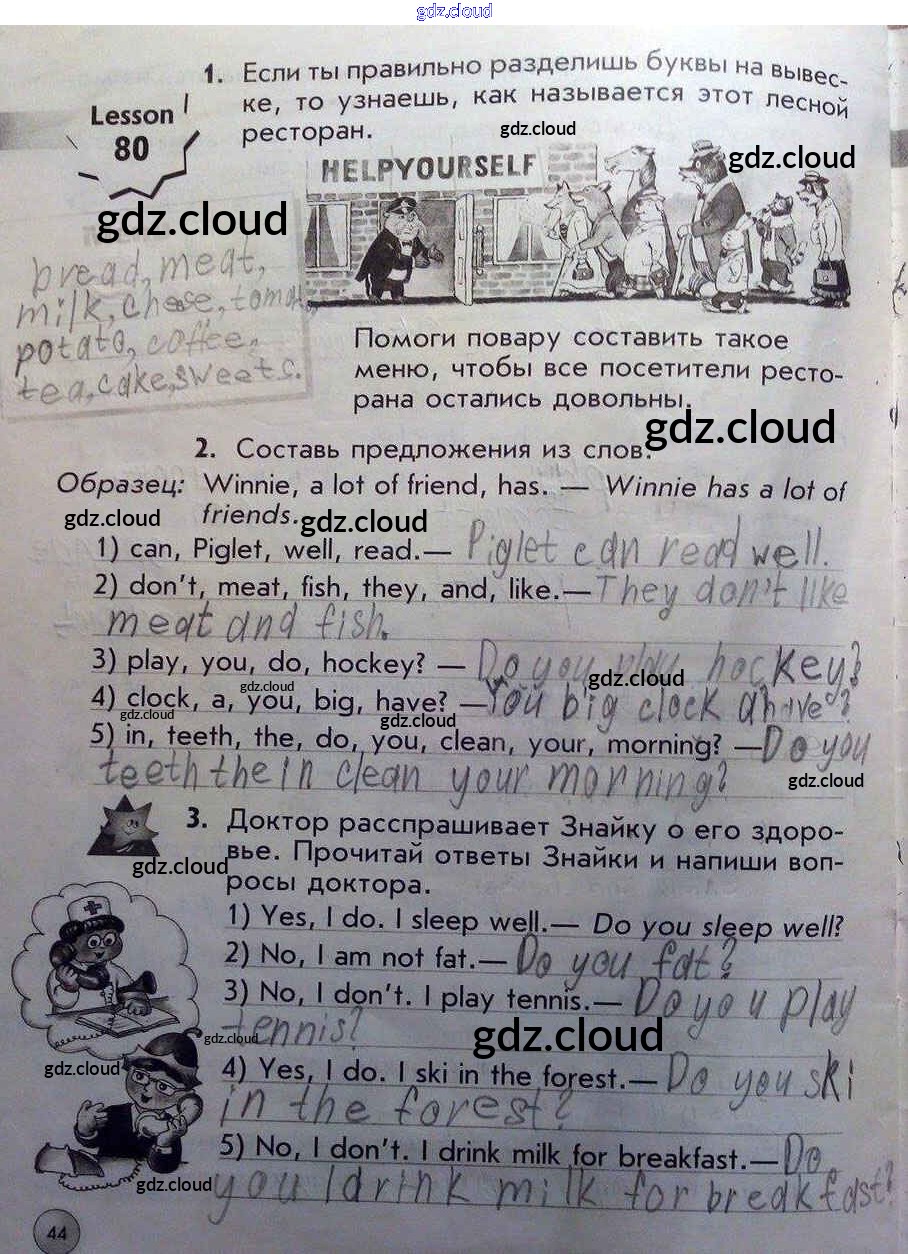 Ответ на задание стр.44 Рабочая тетрадь Английский язык за 1 (первый) класс Биболетова, Трубанева Enjoy English 2015 Часть 2