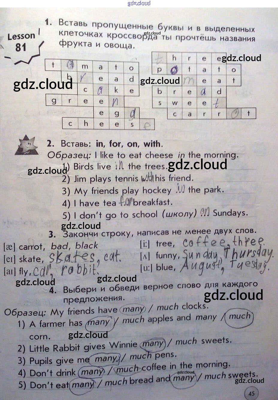 Ответ на задание стр.45 Рабочая тетрадь Английский язык за 1 (первый) класс Биболетова, Трубанева Enjoy English 2015 Часть 2