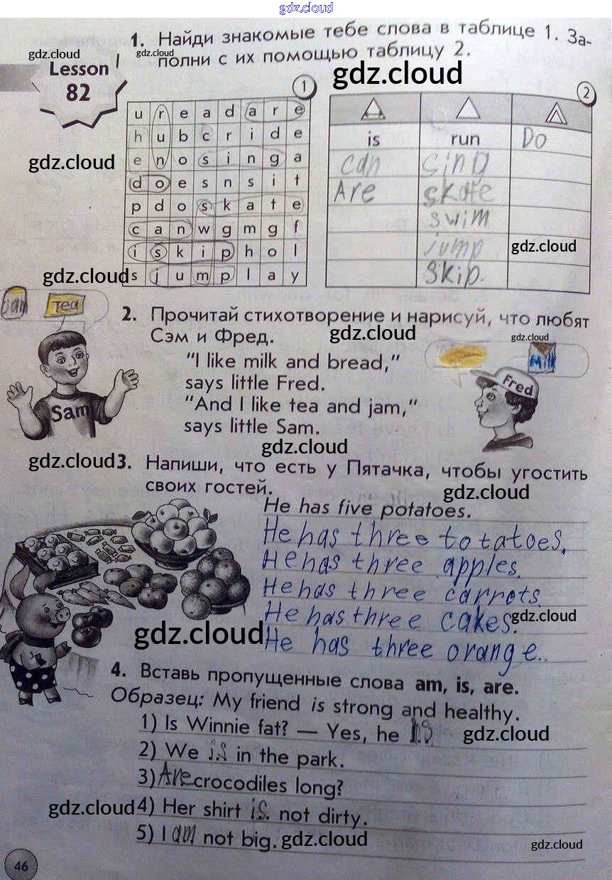 Ответ на задание стр.46 Рабочая тетрадь Английский язык за 1 (первый) класс Биболетова, Трубанева Enjoy English 2015 Часть 2