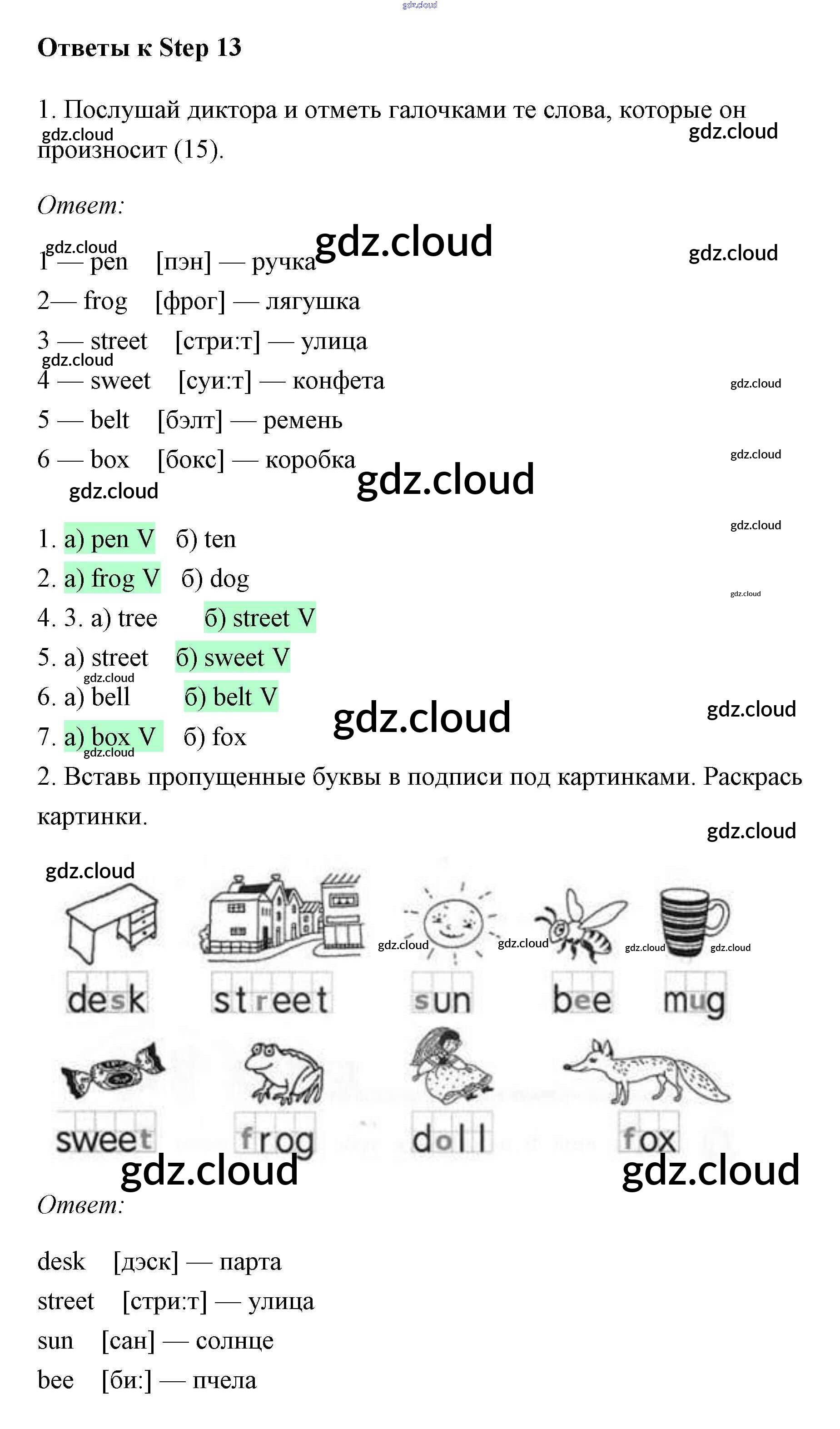 Ответы к Step по Английскому языку 2 класс Рабочая тетрадь Афанасьева Rainbow Дрофа