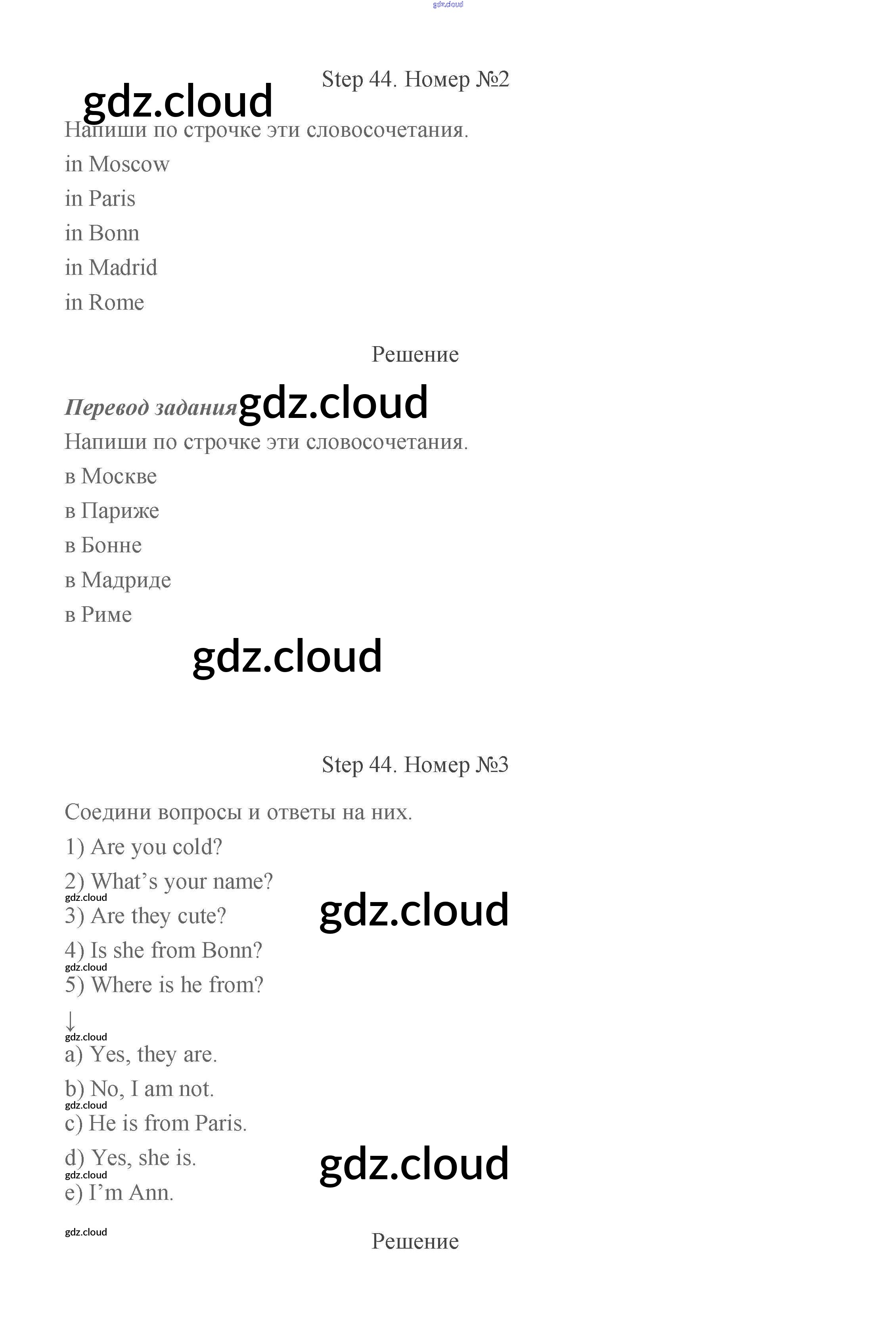 Ответ на задание 44 Рабочая тетрадь Английский язык за 2 (второй) класс Афанасьева, Михеева Rainbow 2016