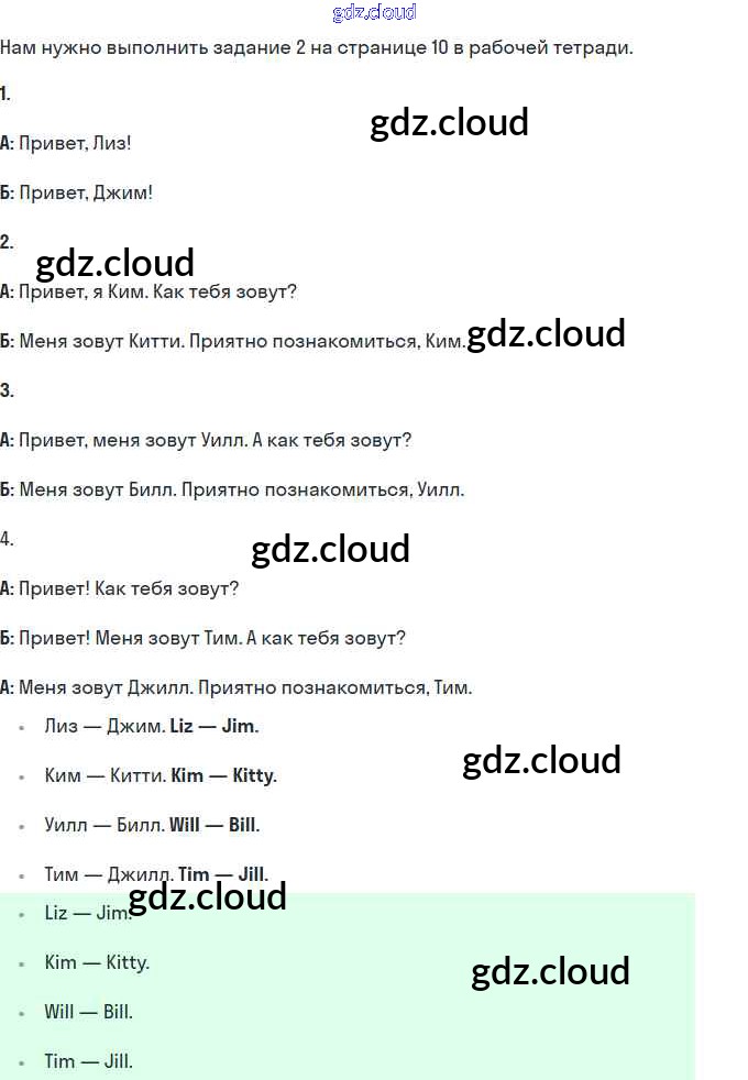 Ответ на задание 10 Учебник Английский язык за 2 (второй) класс Афанасьева, Михеева Rainbow 2017 Часть 1, 2