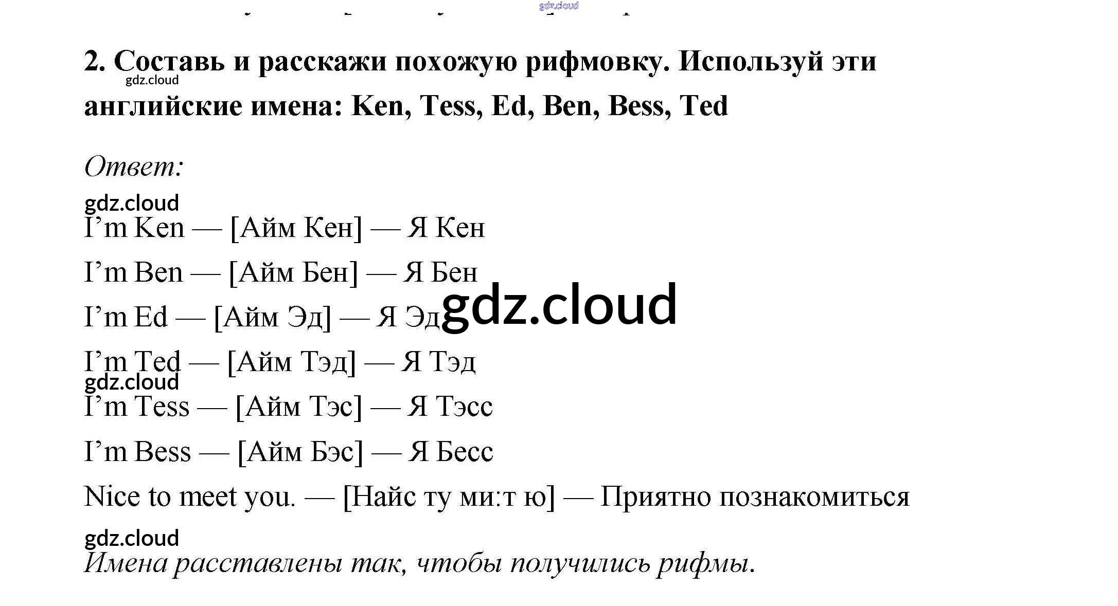 Ответ на задание 2 Учебник Английский язык за 2 (второй) класс Афанасьева, Михеева Rainbow 2017 Часть 1, 2