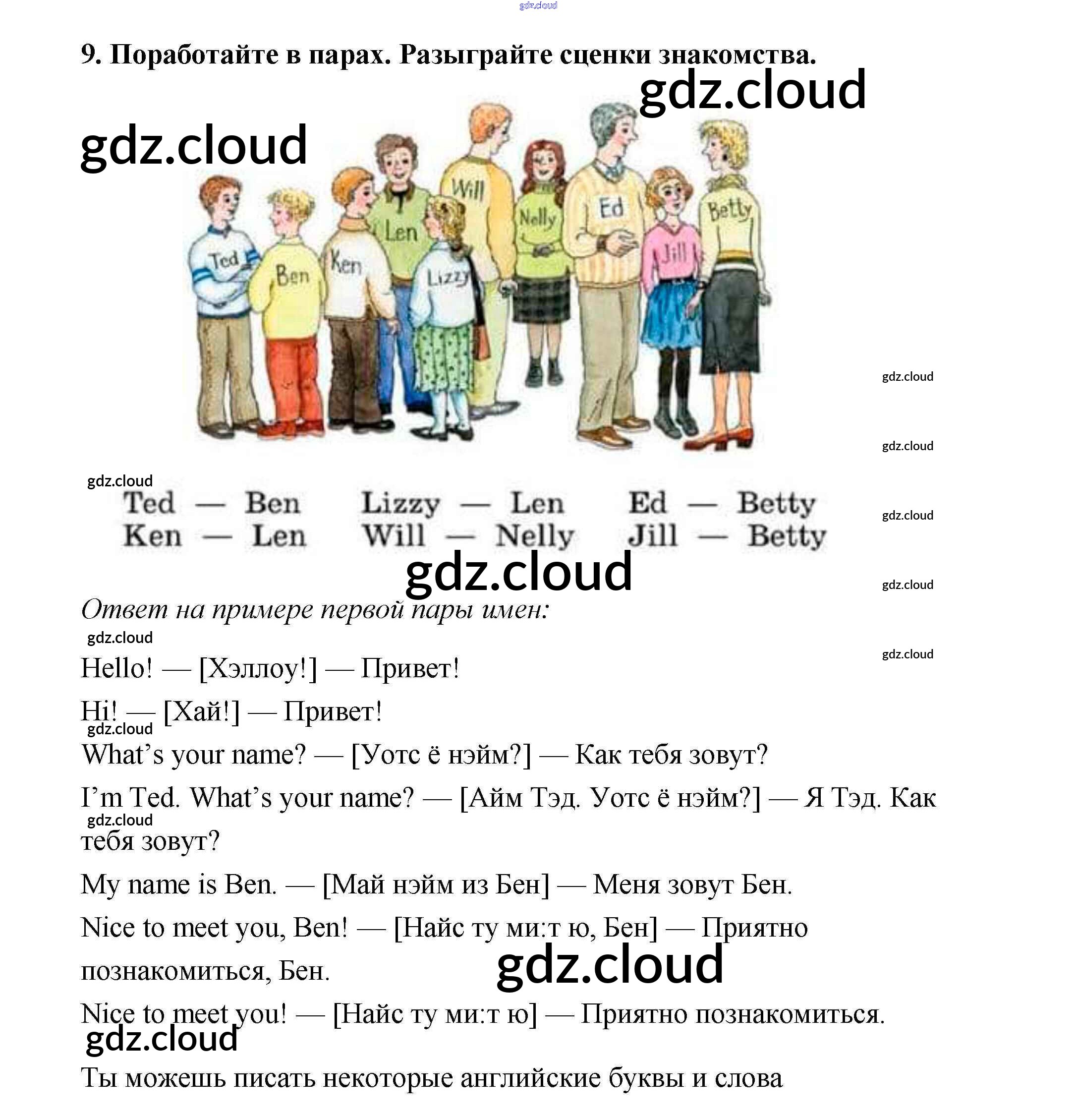 Ответ на задание 9 Учебник Английский язык за 2 (второй) класс Афанасьева, Михеева Rainbow 2017 Часть 1, 2